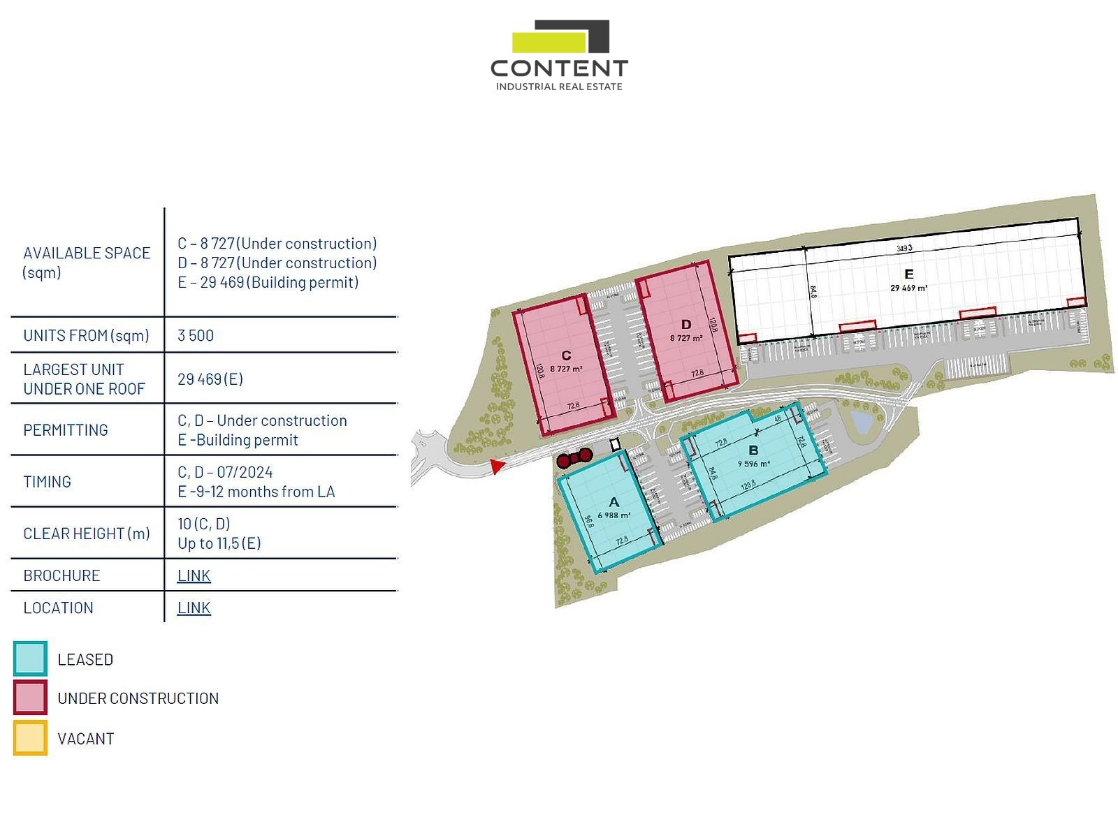 - samostatné jednotky od cca 3500 m² do 8727 m² pod jednou střechou