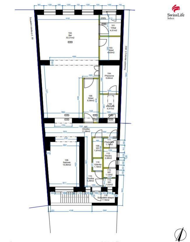 Tento dům je ideální pro přestavbu na tři moderní bytové jednotky o dispozici 4+kk. Každá jednotka má rozlohu 111,8 m a obsahuje prostornou obytnou kuchyni (35 m) a tři pokoje (každý 15 m). Pokoje budou orientovány do ulice, zatímco kuchyně a obytné prostory budou směřovat do vnitrobloku. K jednotkám náleží koupelna, samostatné WC a šatna. Každá bytová jednotka bude mít samostatný vstup ze společného komunikačního jádra a vlastní sklepní kóji v 1. podzemním podlaží. Vstup do objektu bude umístěn ve vnitrobloku.