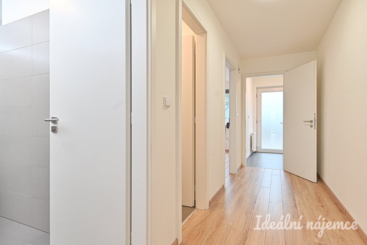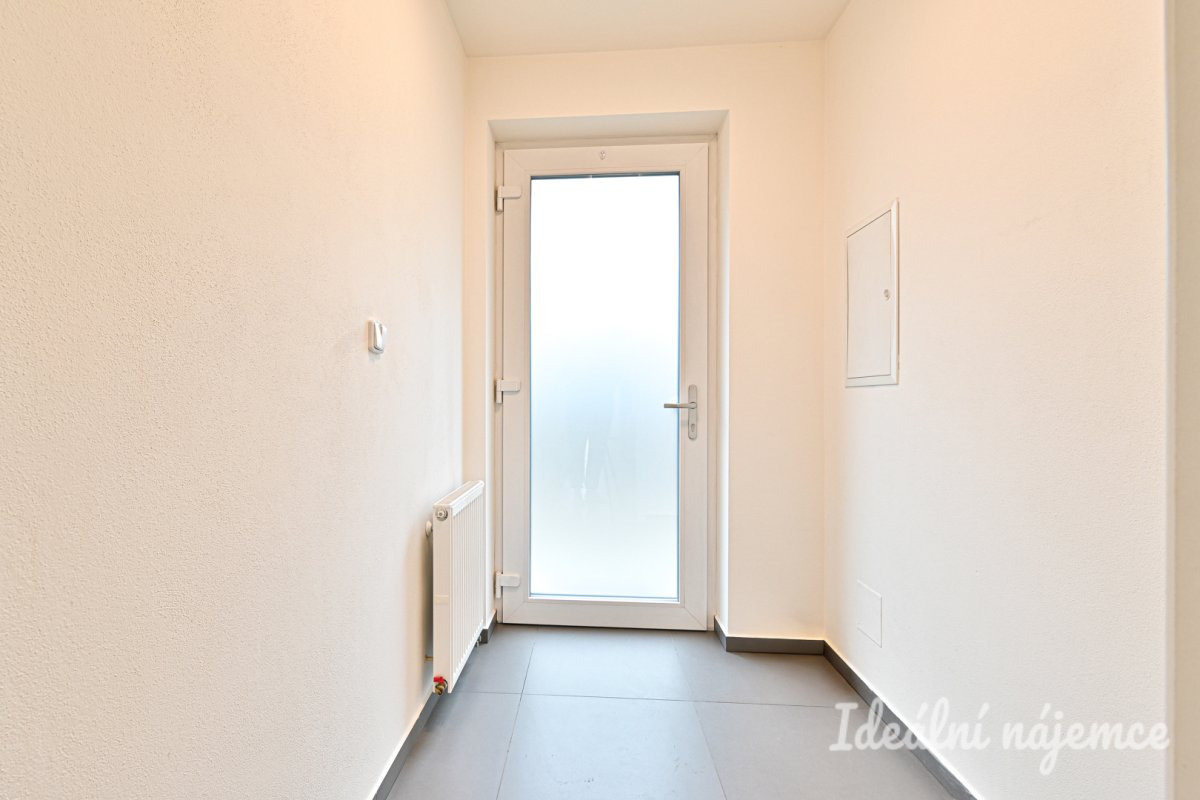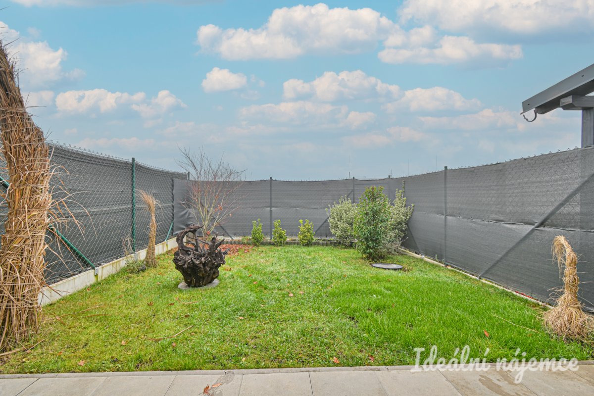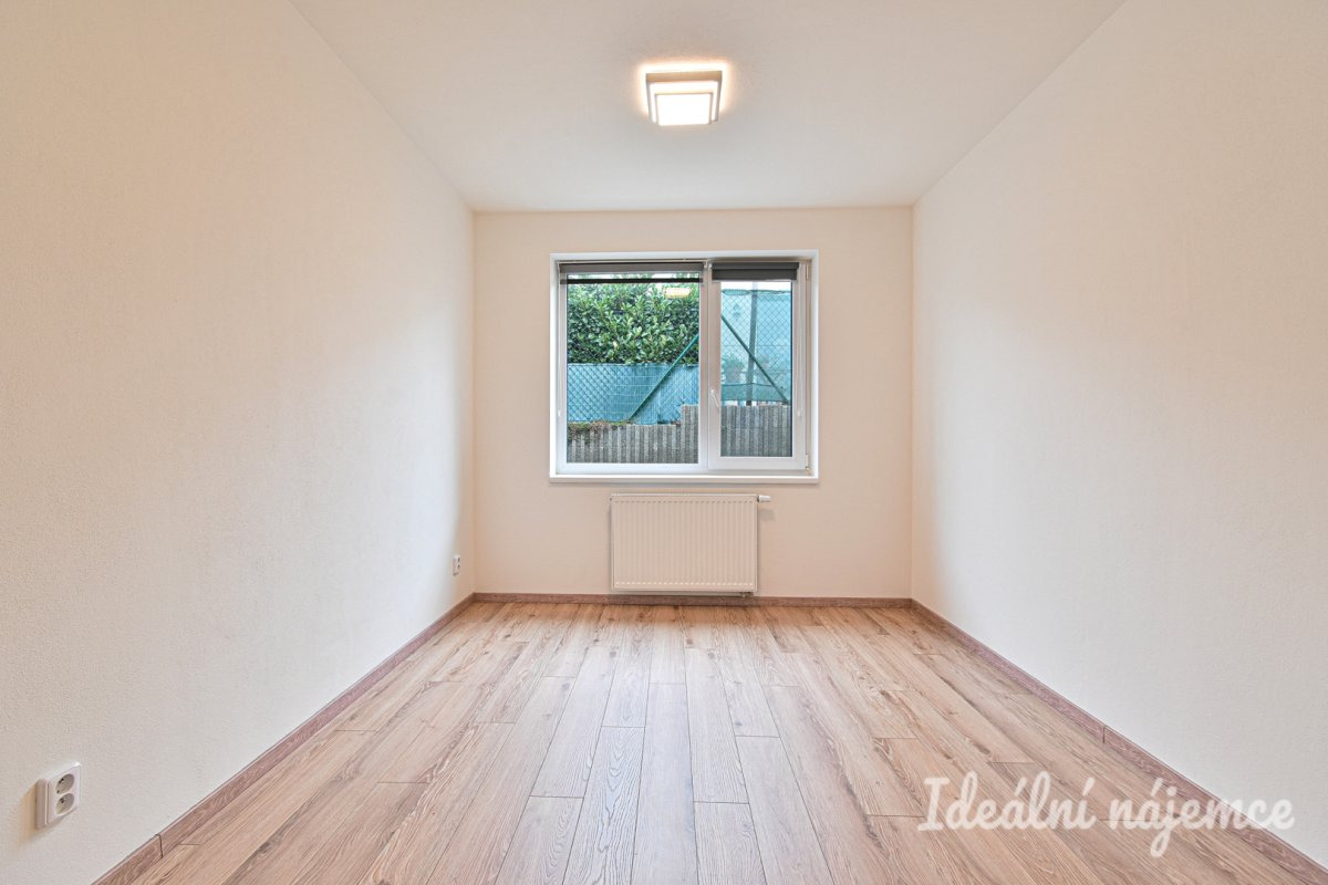 Jedná se o nezařízený byt. V kuchyni naleznete kuchyňskou linku s varnou deskou, troubou, myčkou nádobí a lednicí. V přední části se nachází vstup na terasu a zahradu.