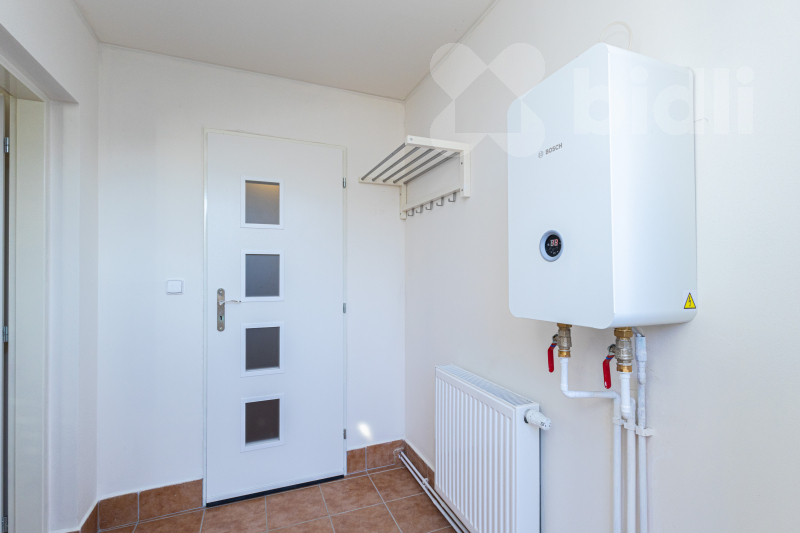 Při vstupu do domu se nachází menší předsíň, kde je umístěn plynový kotel, a zároveň je zde vstup do koupelny se sprchovým koutem a toaletou.