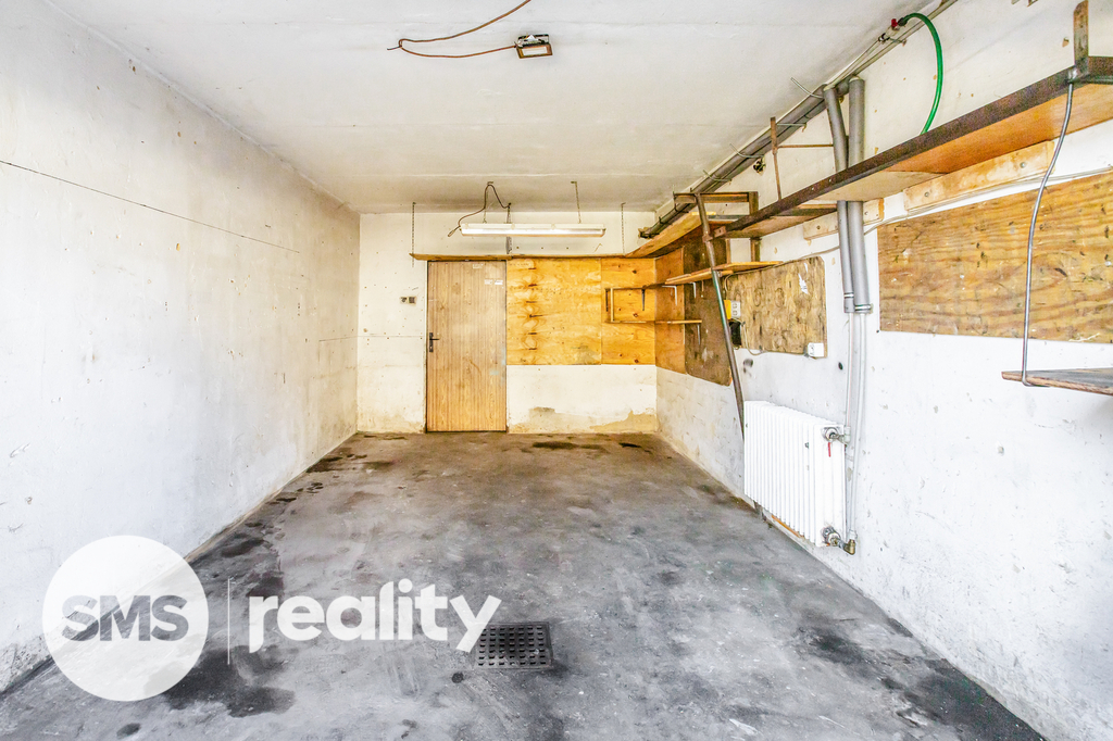 K bytu náleží 2 prostorné sklepní místnosti (14 m² a 6 m²) a také vlastní garáž o velikosti 18 m², která je přímo součástí domu – ideální nejen pro parkování, ale i jako dílna nebo úložný prostor.