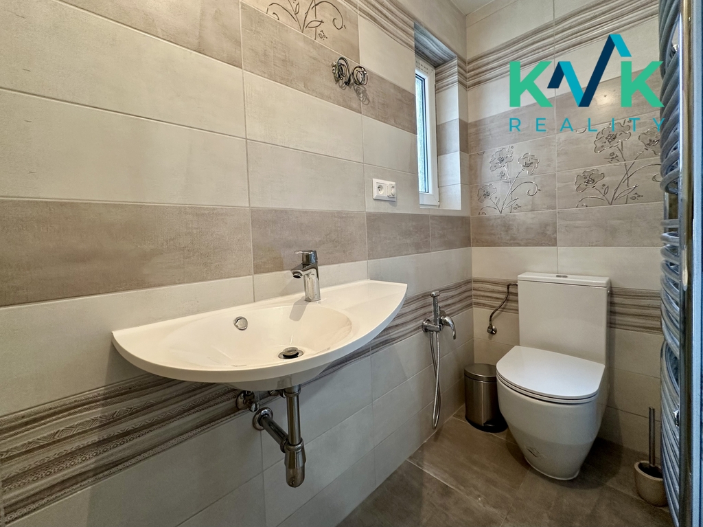 V přízemí Vás přivítá prostorná vstupní hala, na kterou navazuje menší koupelna se sprchovým koutem a toaletou. Naproti koupelně se nachází útulný pokoj pro hosty či pracovna.