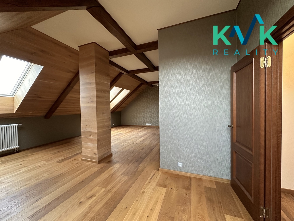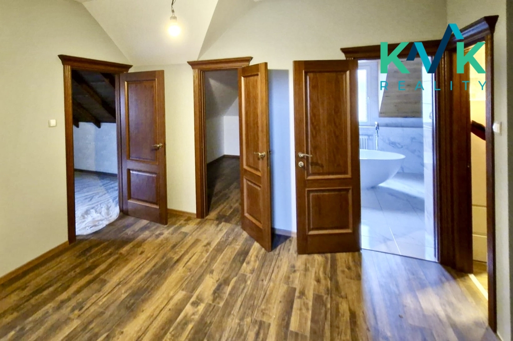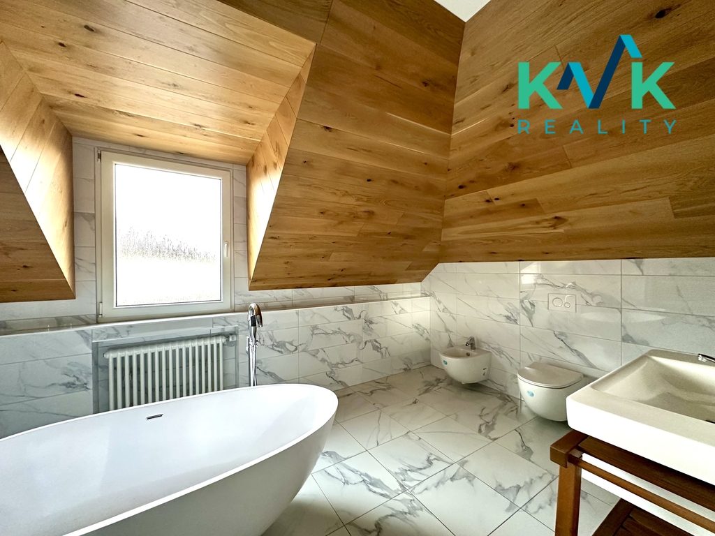 V prvním nadzemním podlaží se nachází tři prostorné ložnice a luxusně řešená koupelna, která nabízí volně stojící vanu, nadstandardně velký sprchový kout, bidet a toaletu – ideální místo pro každodenní relaxaci.