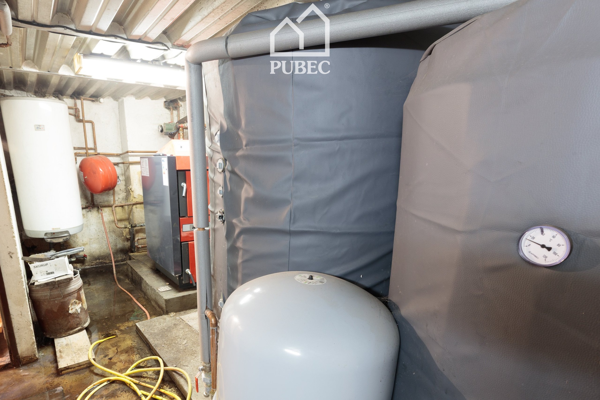Kvalitně provedená zděná stavba je částečně podsklepená (1x sklepní místnost). Ve sklepním prostoru je umístěn moderní topný systém, který sestává z kotle Atmos (třída A+) a zásobníků na nahřátou vodu. V době, kdy kotel není v provozu, je teplá voda nezávisle ohřívána el. bojlerem. V 1. nadzemním podlaží se nachází zádveří, kuchyně, obývací pokoj s krbem, samostatné WC, koupelna s vanou. Ve 2. nadzemním podlaží je jeden větší pokoj s balkonem, 2 menší samostatné pokoje, koupelna s WC a sprchovým koutem. Stavební úpravou původní stavby vzniklo prostorné atrium využitelné pro posezení, stání pro auto či jako venkovní dílna a další 2 samostatné místnosti (1x zrekonstruovaná a 1x v původním stavu) umístěné v protější části původního domu.