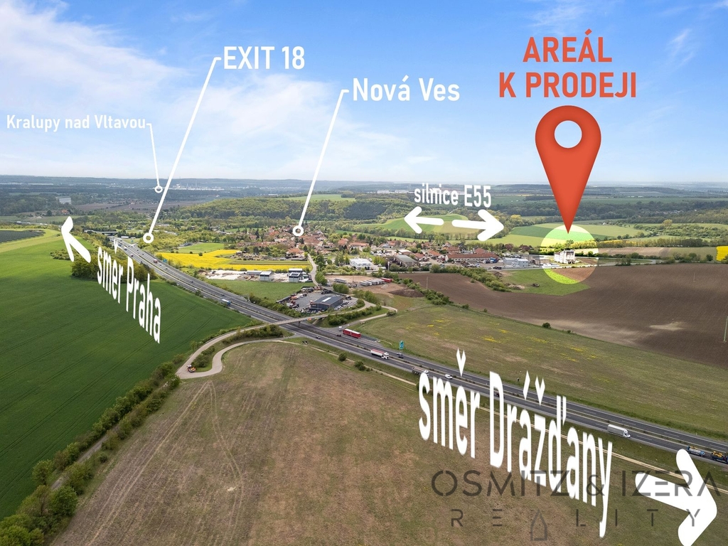 Možnost výroby, skladování, parkování. V části pozemku možnost výstavby kancelářských prostor i ubytování. Komerční pozemek 3671 m2 u sjezdu na dálnici D8. Průmyslová zóna kde vás nebudou omezovat, kolik takových lokalit u Prahy najdete? Na pozemku původní skladové a hospodářské budovy o celkové užitné ploše přes 1500 m2. Sklady, výrobní haly, autoservisu nebo zázemí pro provoz firmy - možnosti využití. Vše u dálnice.