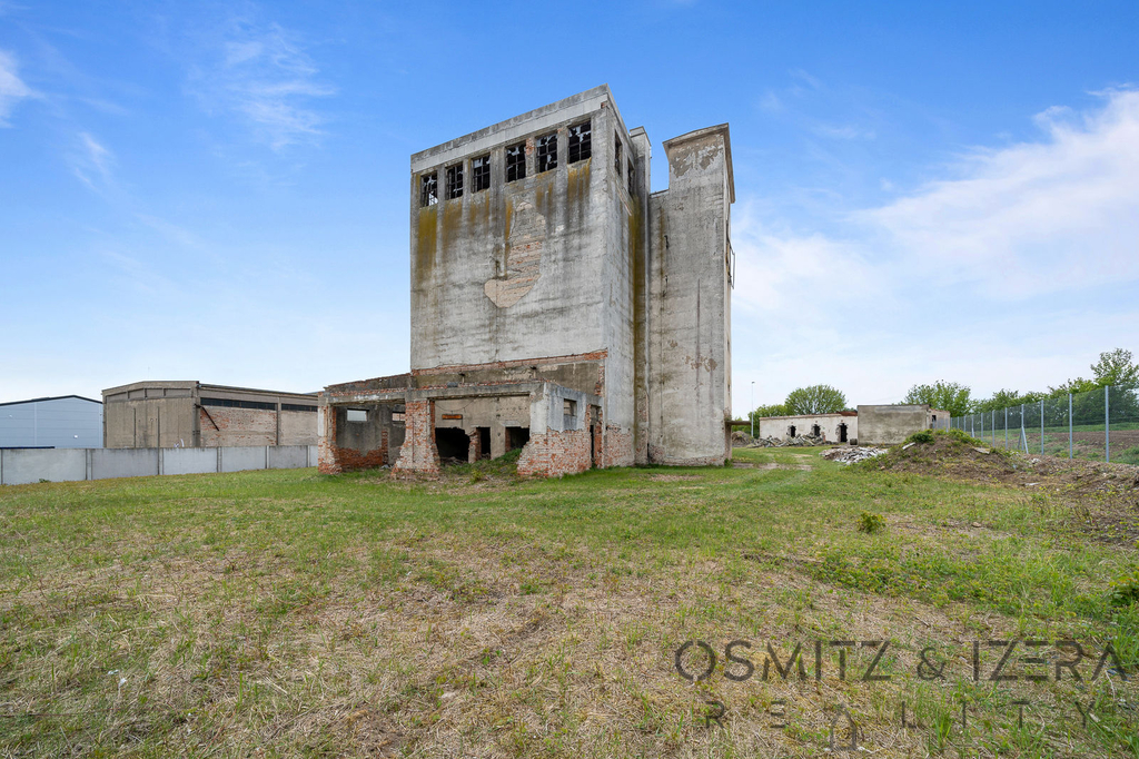 Pozemku dominuje velká 6-ti patrová budova sušičky s variabilním využitím a celkovou výškou 18 m který je v lokalitě dominantní dobře vidět z dálnice - ideální reklamní plocha.