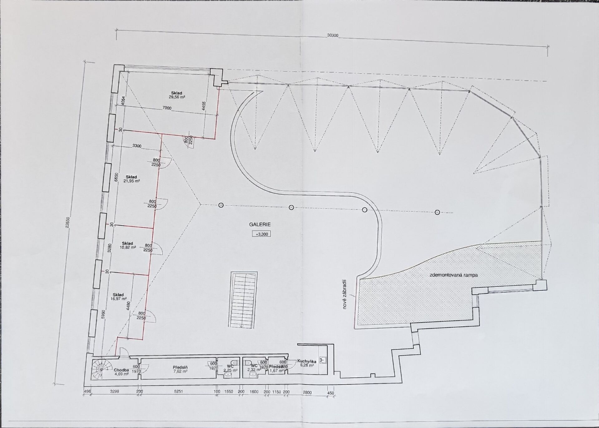 Možnost pronájmu kanceláří v patře: až 300 m²