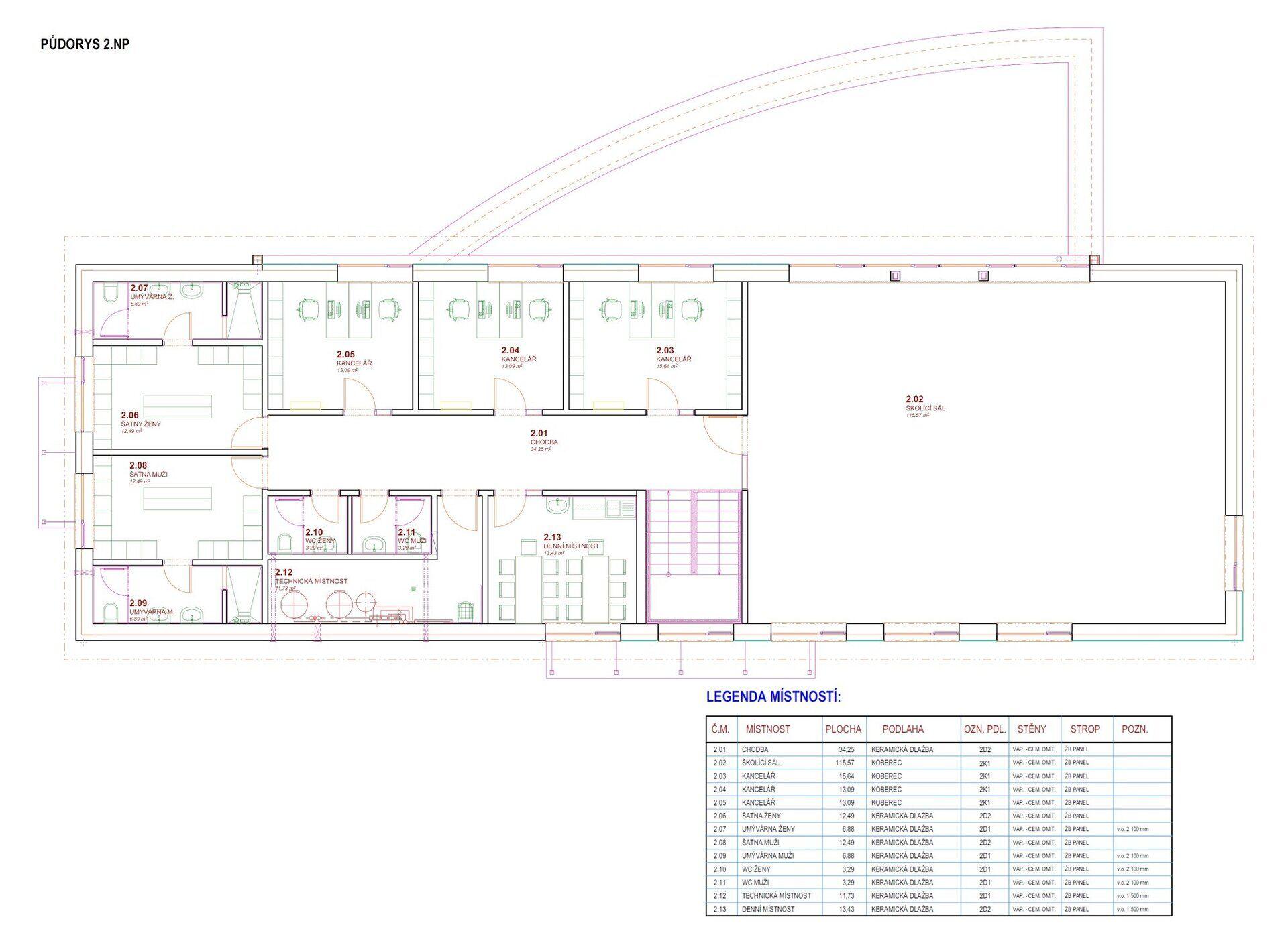 -- samostatné dveře zvenku na schodiště do II. NP, kde se nachází sociální a administrativní zázemí,