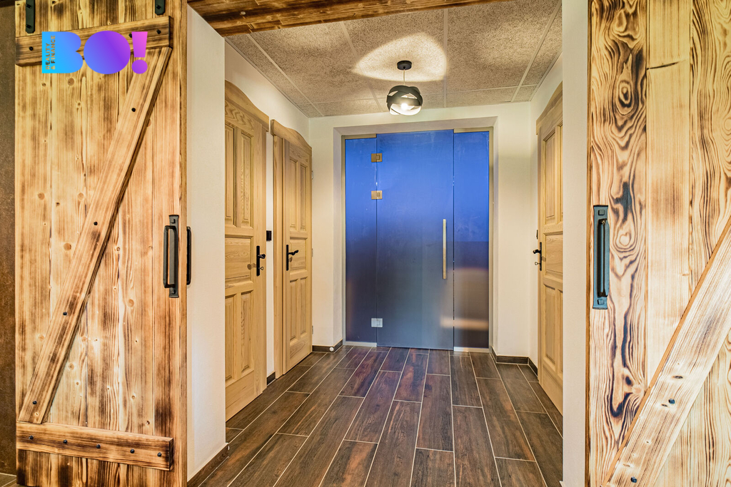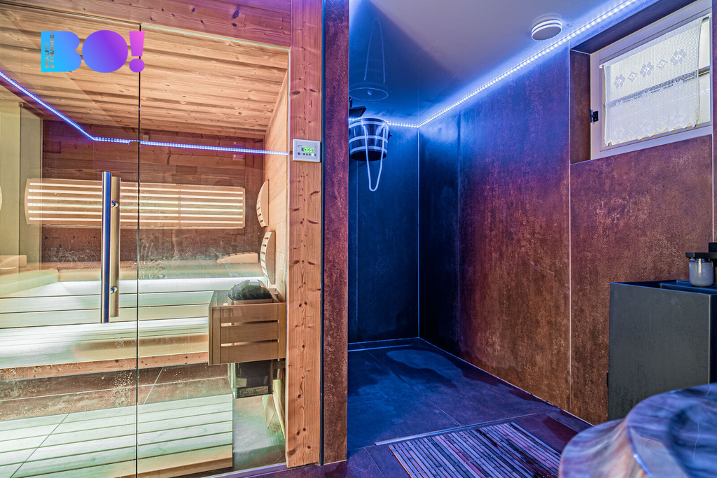 Přízemí domu je skutečnou perlou. Kompletní wellness, včetně vířivky BALBOA, sauny, odpočinkové části a sprchy vše doplněné o atmosféru hvězdného nebe. Vinný sklípek je ideální pro uskladnění oblíbených vín a posezení při degustaci.