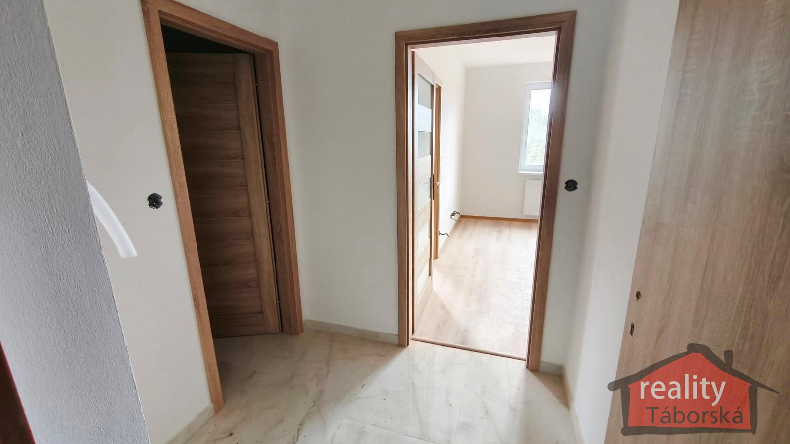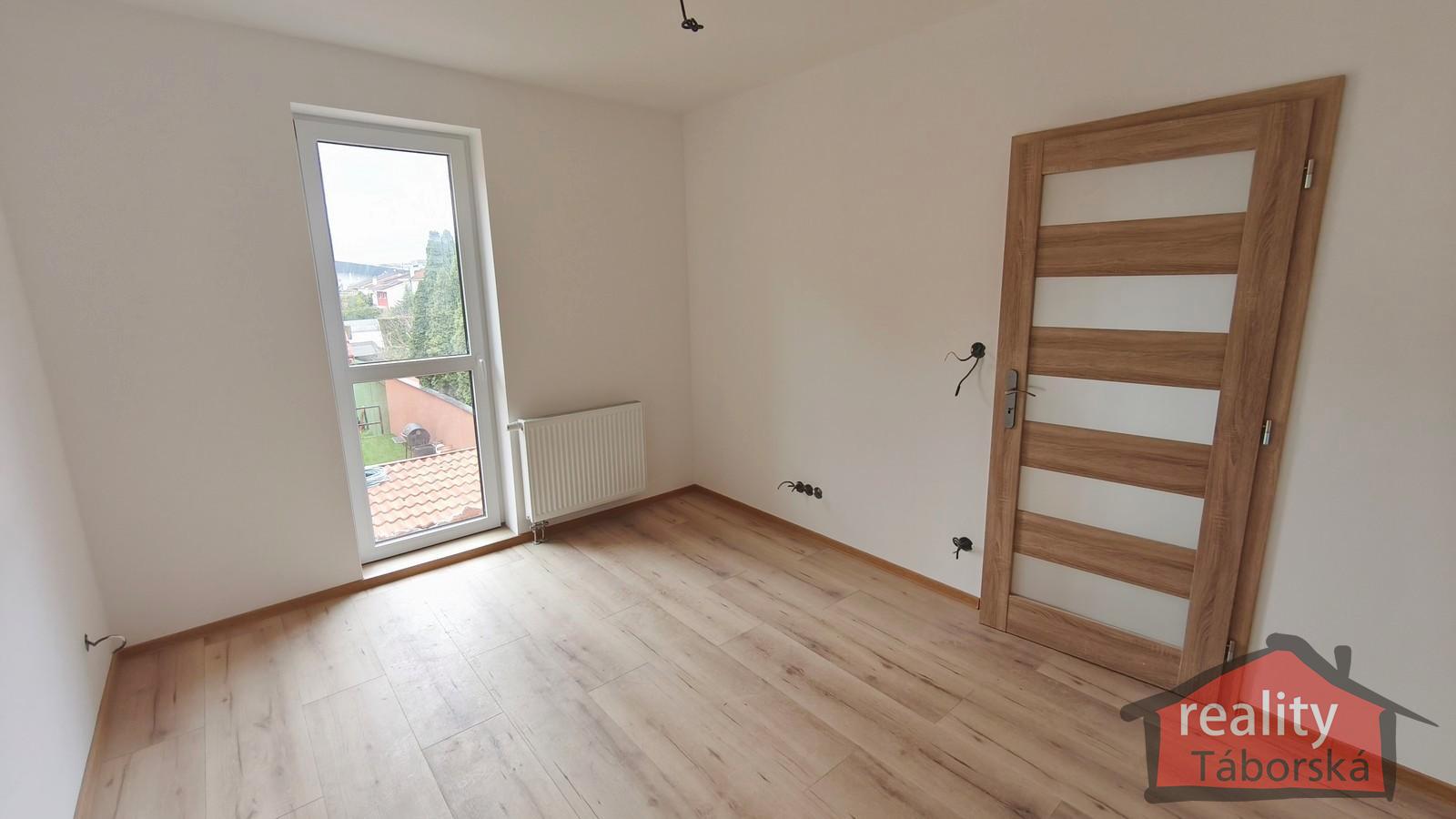V zastoupení majitele Vám nabízím ke koupi nový byt 2+kk s balkonem v prvním patře třípatrové budovy v obci Nupaky, Praha východ.