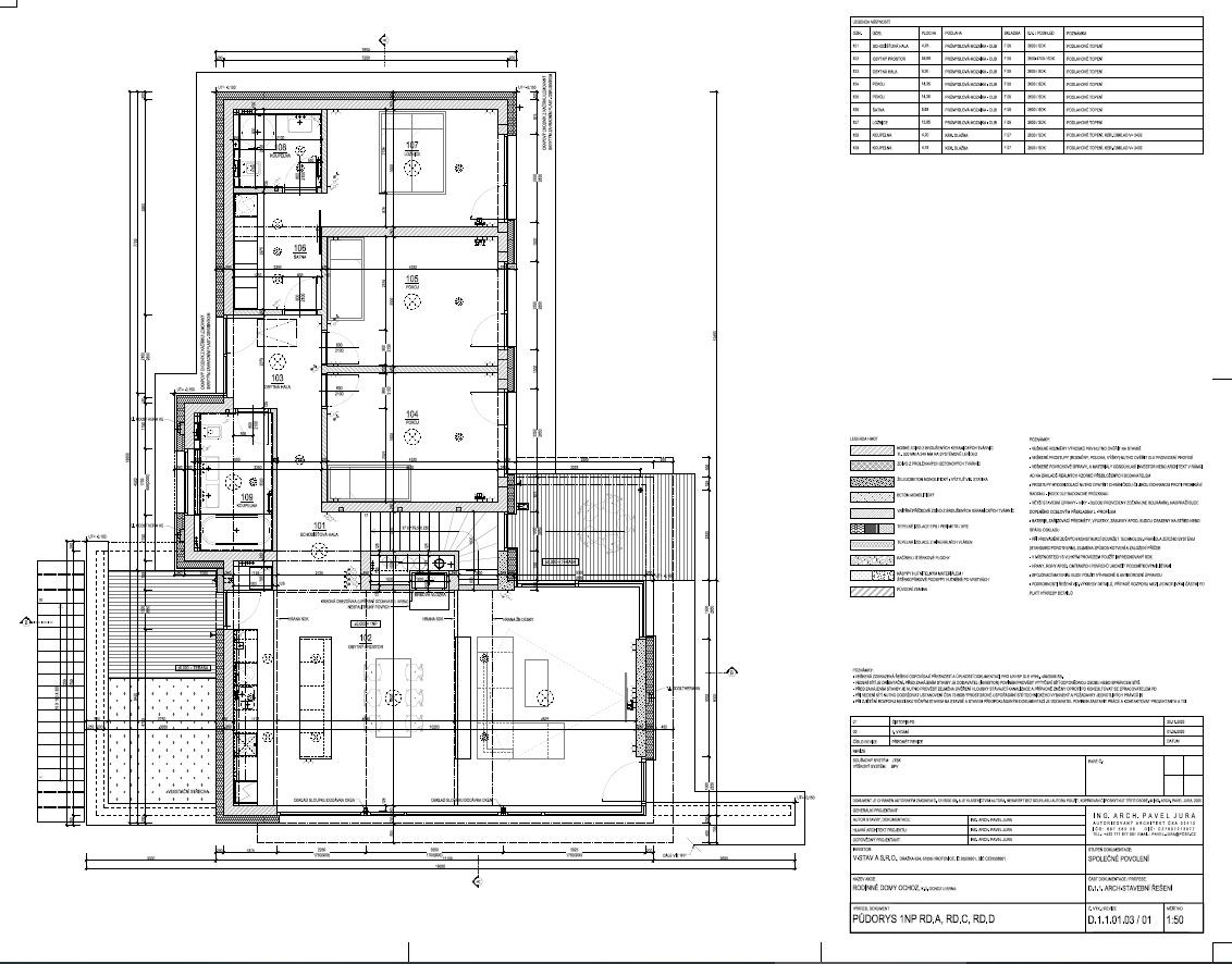 1. PP - technické: zádveří, vstupní hala, WC, technická místnost, pracovna, garáž pro dva automobily;