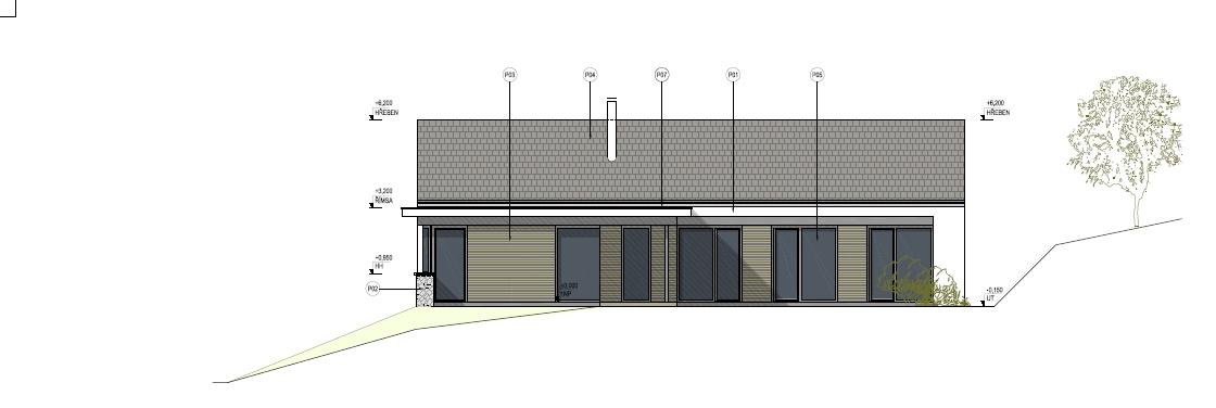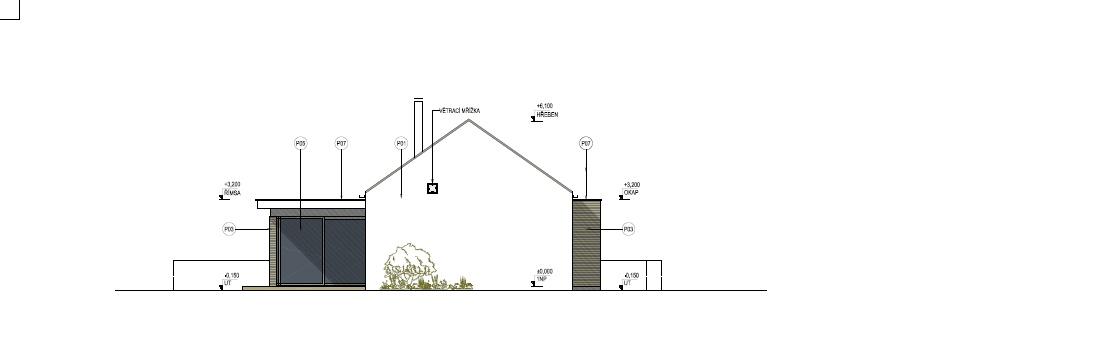 Technický popis: základové pasy + ŽB základová deska, svislé konstrukce 1.PP btb tvarovky, 1.NP keramické tvarovky, strop 1.PP ŽB monolitická deska, strop 1.NP řešen jako součást konstrukce dřevěného krovu, střecha sedlová s keramickou krytinou, omítaná fasáda s částečně dřevěným obkladem ze sibiřského modřínu, provedená v zateplovacím systému ETICS, výplně otvorů hliníkové, velkoplošná skla, předokenní žaluzie. Primárním zdrojem tepla je rekuperační jednotka s integrovaným tepelným čerpadlem s výkonem až 1,3 kW, sekundárním zdrojem tepla je ve všech místnostech elektrické podlahové topení, interiérové schodiště zděné Ytong, dešťová voda svedena do akumulační jímky s bezpečnostním přepadem do vsakovacích bloků. V ceně domu je zahrnuta chytrá domácnost SOMFY, díky které bude možné ovládat žaluzie, garážová vrata, regulaci topení a videotelefon, zabezpečovací systém s napojením dveřních magnetů a sensorů pohybu, venkovní kamery. V ložnici, dětských pokojích a obývacím prostoru budou integrovány klimatizační jednotky. Dům bude prodáván ve stupni dokončení and #34;White Walls and #34; (bez podlahových krytin, obkladů, zařizovacích předmětů, dveří).
