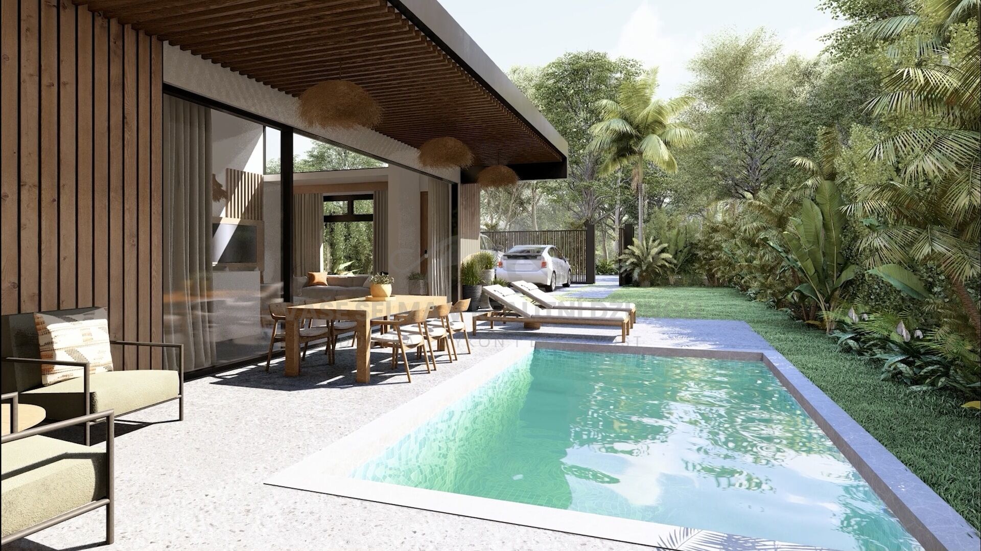 Vyjděte ven do svého vlastního soukromého útočiště, s elegantním bazénem obklopeným tropickou krajinou. Ať už si užíváte ranní kávu u bazénu nebo se osvěžujete po dni stráveném na pláži, tento venkovní prostor nabízí soukromí i pohodlí.