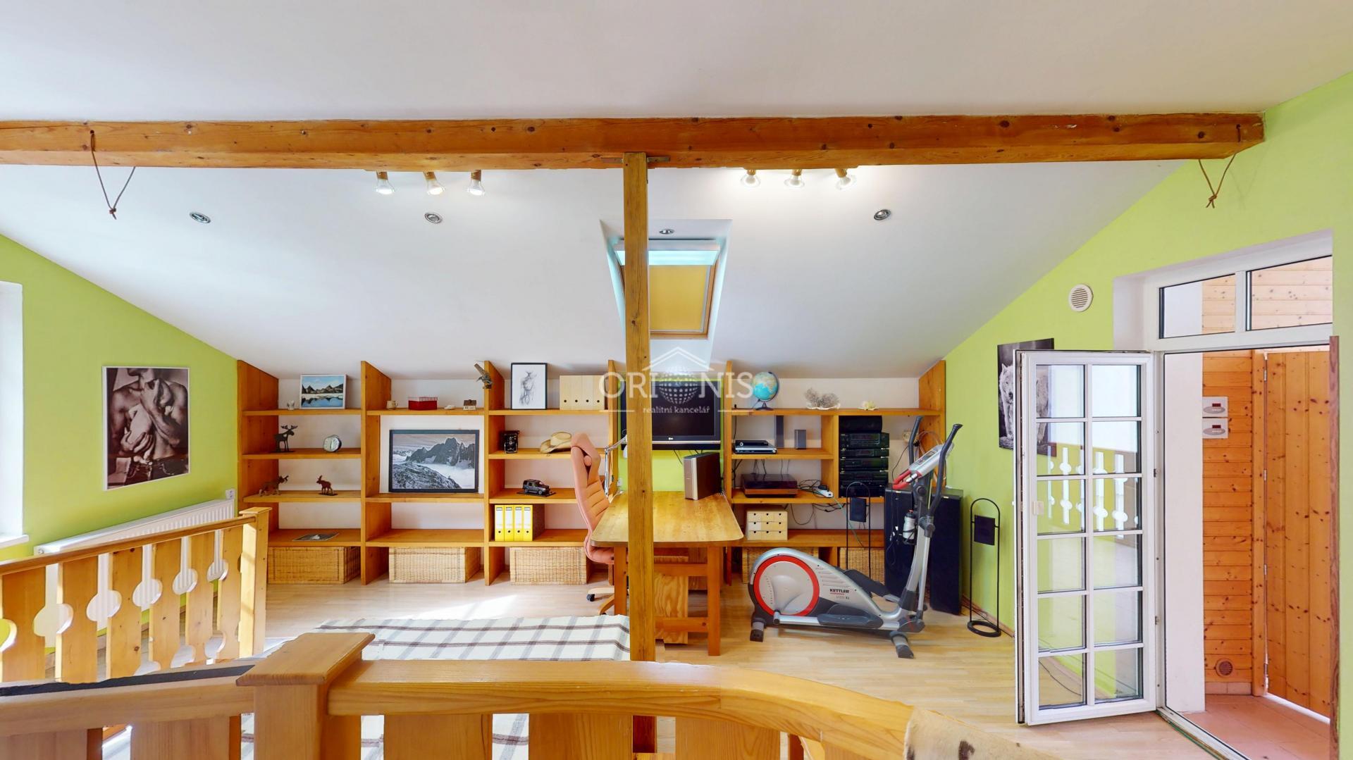 Druhé patro podkroví nabízí další koupelnu, ateliér, apartmán pro hosty.