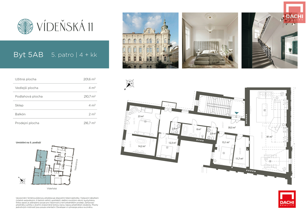 Jako výhradní prodejce Vám s potěšením představujeme skutečný klenot rezidenčního bydlení – penthouse 5AB. Jedná se o největší a nejluxusnější byt v citlivě zrekonstruované neobarokní budově z roku 1899, v jedné z nejkrásnějších částí Olomouce – na rozhraní centra města a Smetanových sadů. Penthouse je určený výhradně těm, kteří hledají naprostý vrchol pohodlí, estetiky a soukromí.