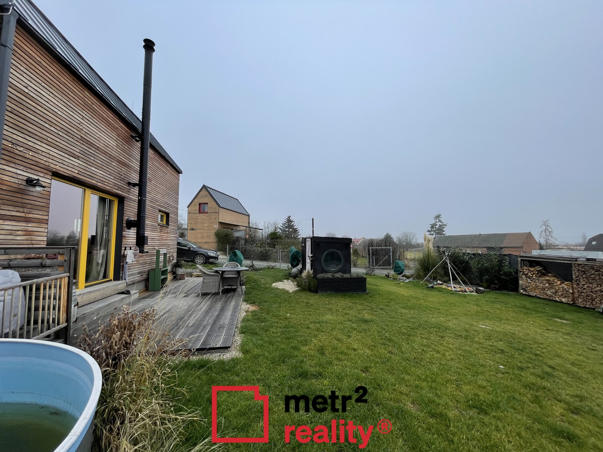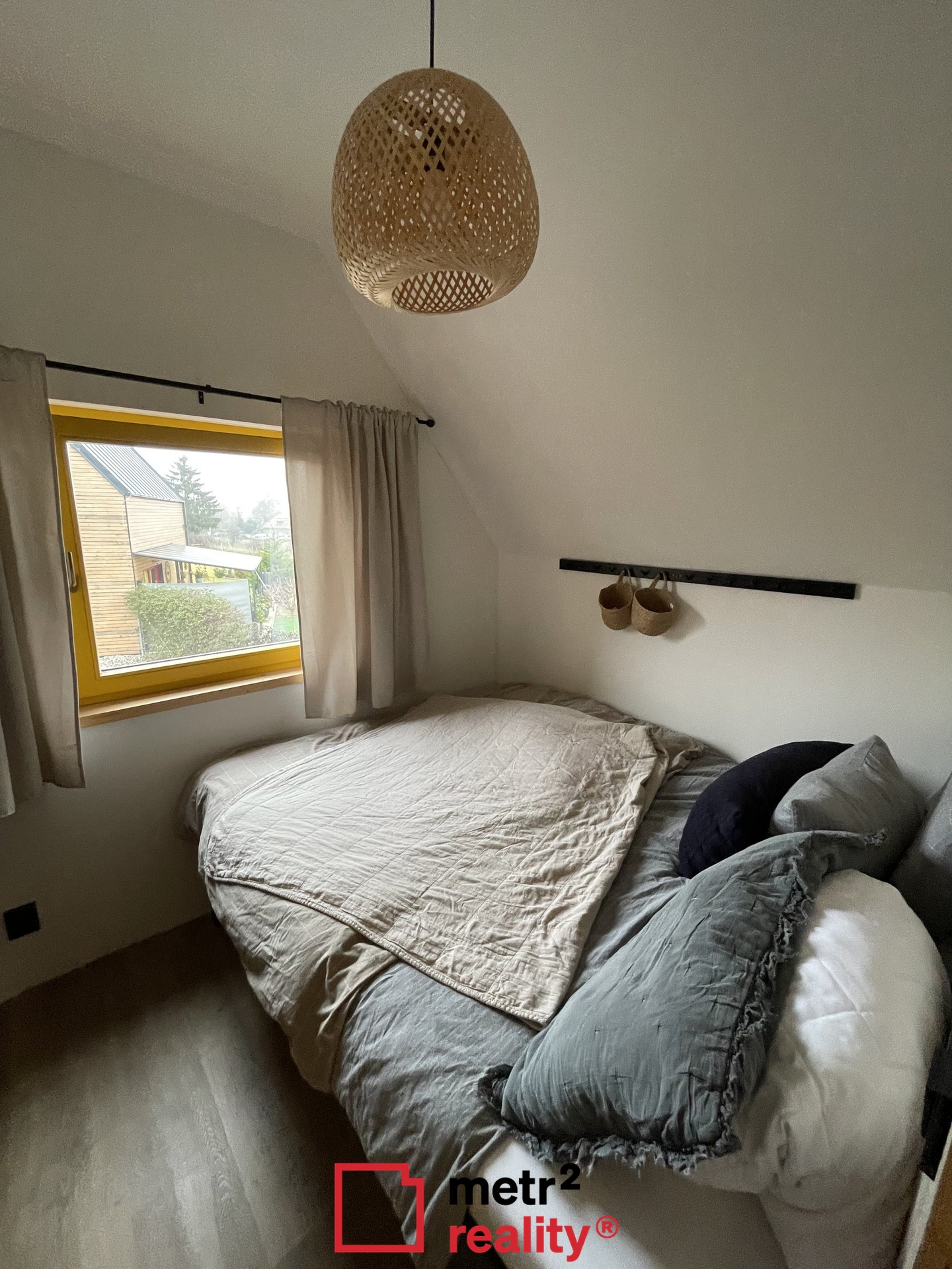 Dům o dispozici 3+1 je promyšleně řešen tak, aby každý člen rodiny našel svůj koutek. Dům je rozšířen přístavbou kontejneru. Moderní kuchyň v černém dekoru působí elegantně a nabízí plné vybavení, kde vaření bude radostí. Dětský pokoj je vybaven vestavěnou dvoupatrovou postelí, která šetří prostor a vnese do každodenního života dotek hravosti. Útulná ložnice přináší klidné zázemí pro chvíle odpočinku. Obývací pokoj s jídelní částí propojuje rodinu v jeden harmonický celek.