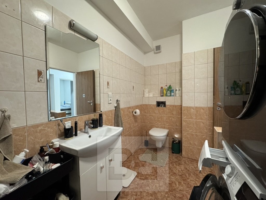 Byt disponuje prostornou předsíní, velkorysou koupelnou s WC, sprchovým koutem a umyvadlem, samostatnou ložnicí s vestavnou skříní a obývacím pokojem s kuchyňským koutem. Kuchyňská linka je vybavena spotřebiči.