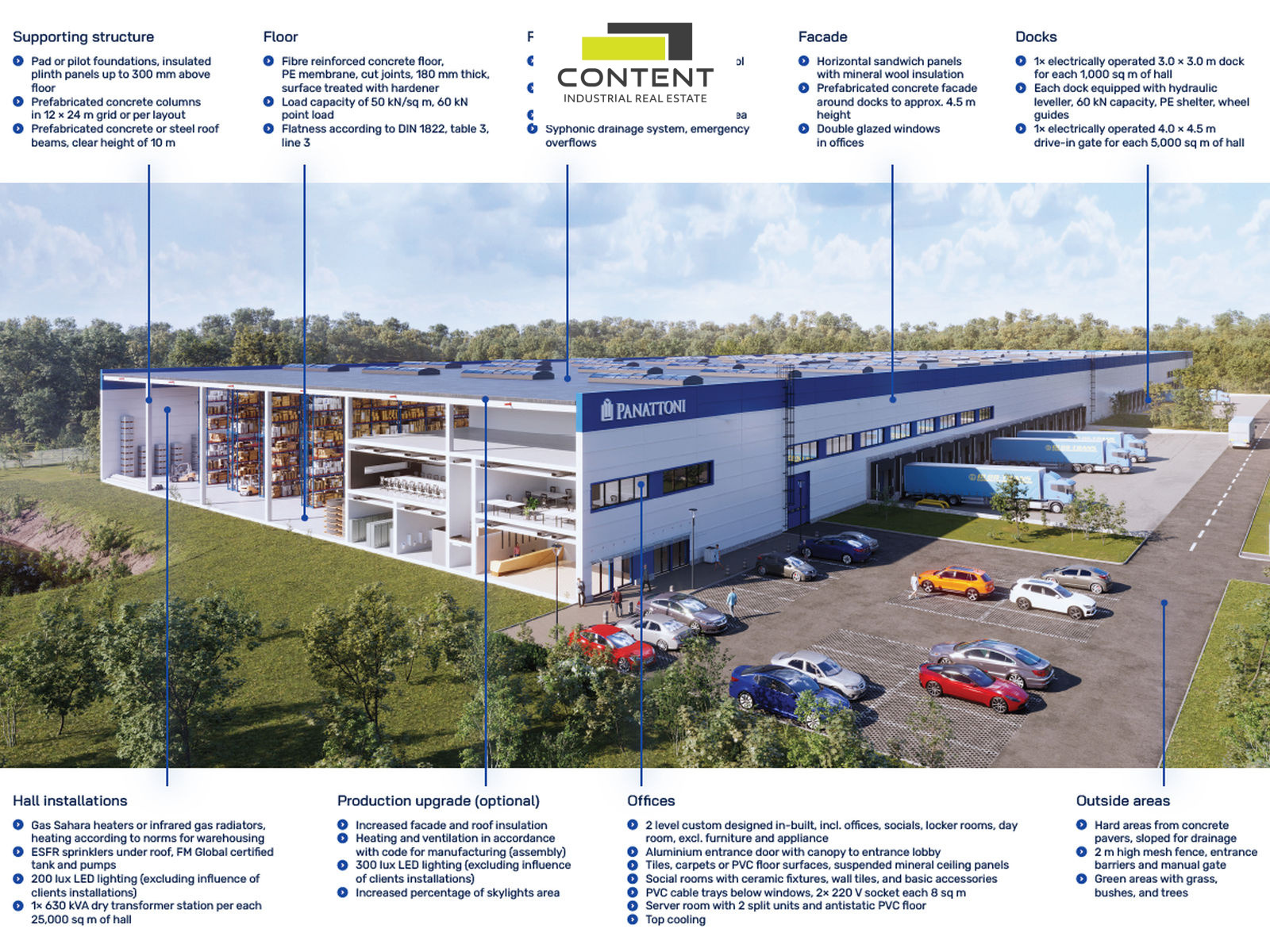 - bezprašná, vysoko-zátěžová podlaha, sprinklery