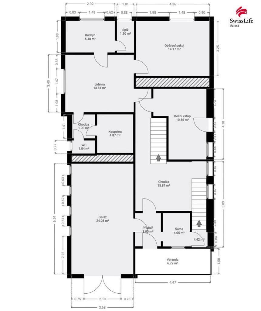 Dům působí jako místo, kde každý člen rodiny může psát svůj vlastní příběh a přitom zůstat součástí jednoho celku. Vlastní garáž s plochou 24 m2, kam dáte i velké auto a prostorný sklep Vám nabídne 46 m2 úložných prostor, včetně technického zázemí.