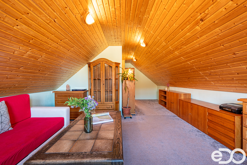 V podkroví byly v minulosti vybudovány další místnosti, které jsou dnes fakticky využívány, avšak jejich provedení neproběhlo na základě projektu ani stavebního povolení. Z tohoto důvodu nejsou započítány do obytné plochy a nejsou předmětem oficiální kolaudace. Zároveň nelze v tuto chvíli garantovat, zda by bylo možné tyto prostory dodatečně zkolaudovat, a to zejména s ohledem na parametry pochozí výšky stropu. Podkroví je proto v nabídce prezentováno spíše jako doprovodný užitný prostor, nikoliv jako plnohodnotná obytná část.