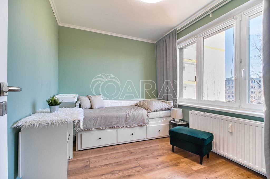 Zbytek bytu doplňují dvě útulné ložnice, které poskytnou dostatek prostoru pro ložnici i dětský pokoj.