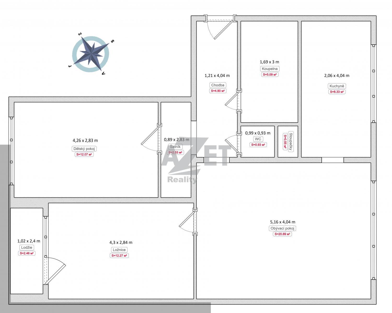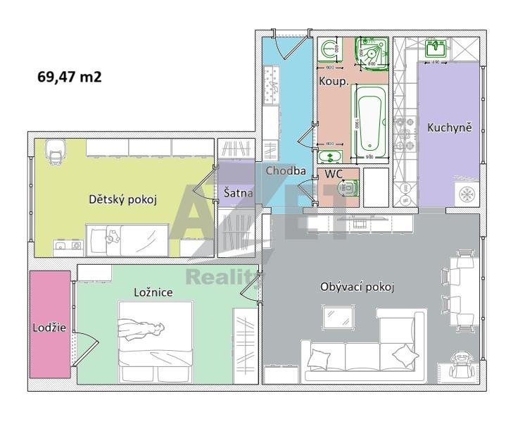 | Dispozice/podlahová plocha: | 3+1/70 m² |