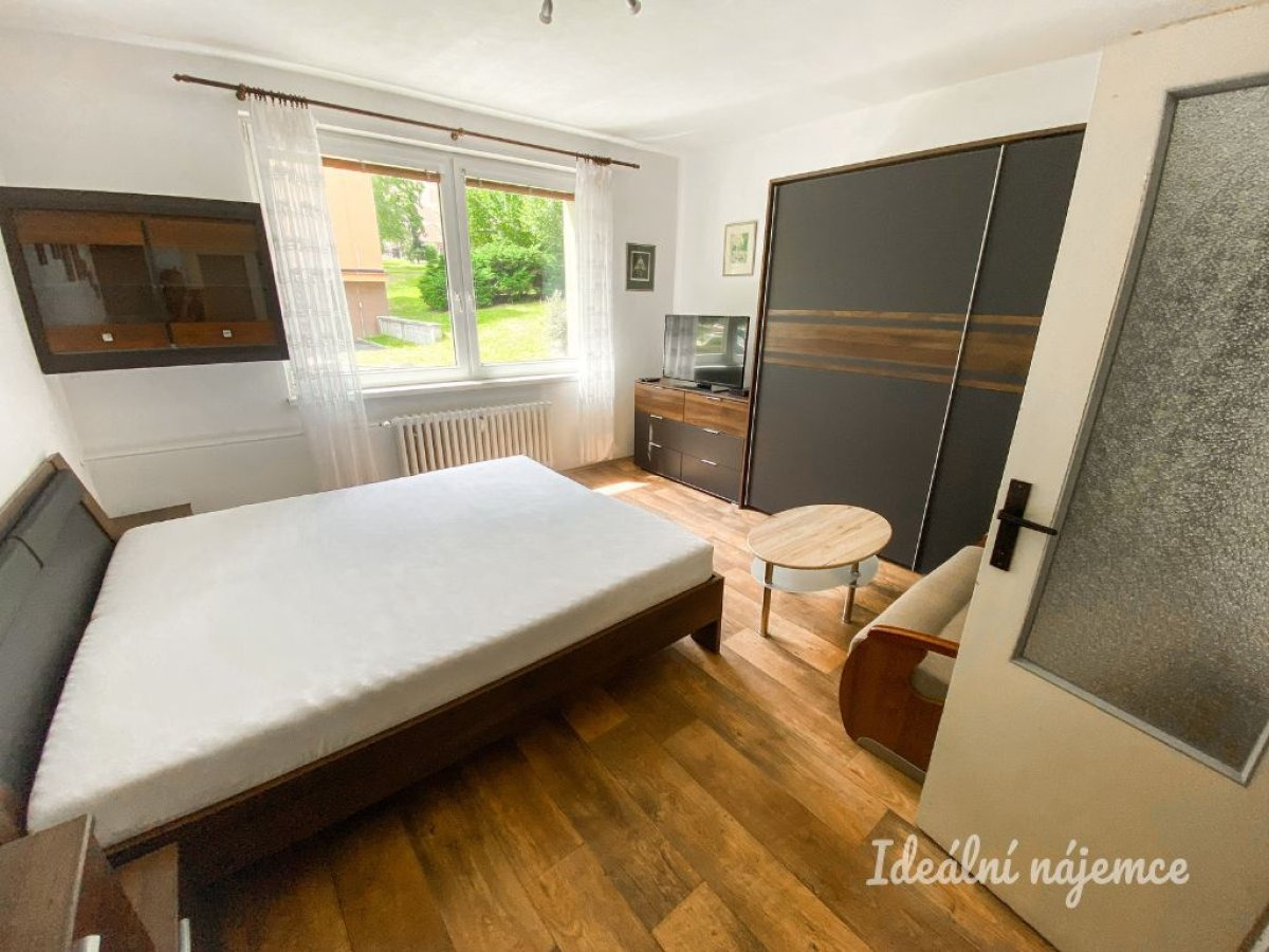 Byt se nabízí plně vybavený. Kuchyně disponuje lednicí, kombinovaným sporákem, digestoří, pračkou, mikrovlnnou troubou a jídelním stolem s židlemi. Součástí ložnice je manželská postel s matracemi, velká šatní skříň, komody, pohovka, televizní stolek a noční stolky. Výhodou bytu je prostorná komora v předsíni. Pěkná koupelna po rekonstrukci je vybavena sprchovým koutem, umyvadlem a skříňkou se zrcadlem. Toaleta je oddělená.