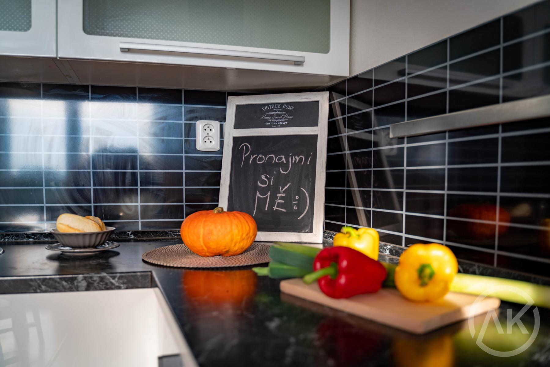 Zařízená kuchyň a některé šatní skříně.