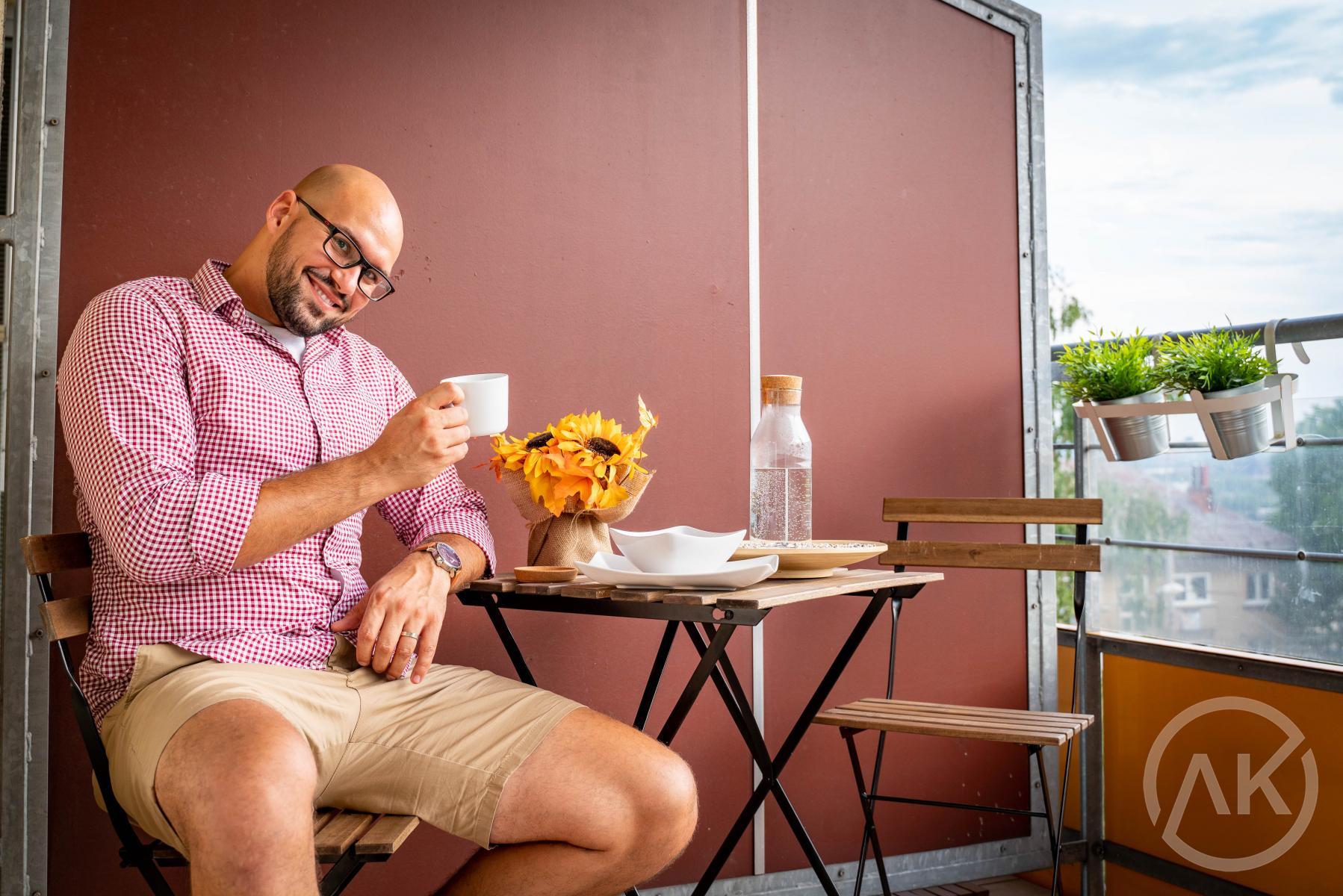 - slušná velikost balkonu má svá pozitiva. Můžete se hned po nastěhování uvést třeba tak, že sousedovi očoudíte avivážované prádlo vaší libovou krkovicí. Jen mi prosím potom nevolejte, že vám sousedi nadávájí. Kdo chce na balkoně grilovat musí mít kuráž. Smoker jsem nezkoušel, na to nemám kuráž ani já,
