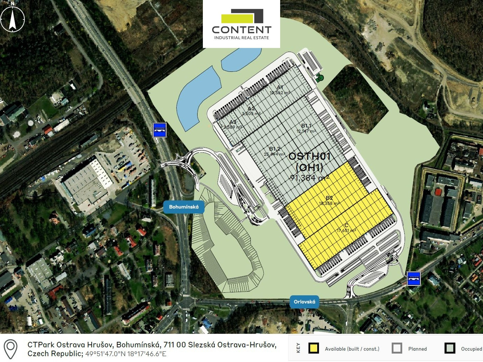 Pronájem skladových, výrobních prostor Ostrava, Hrušov.