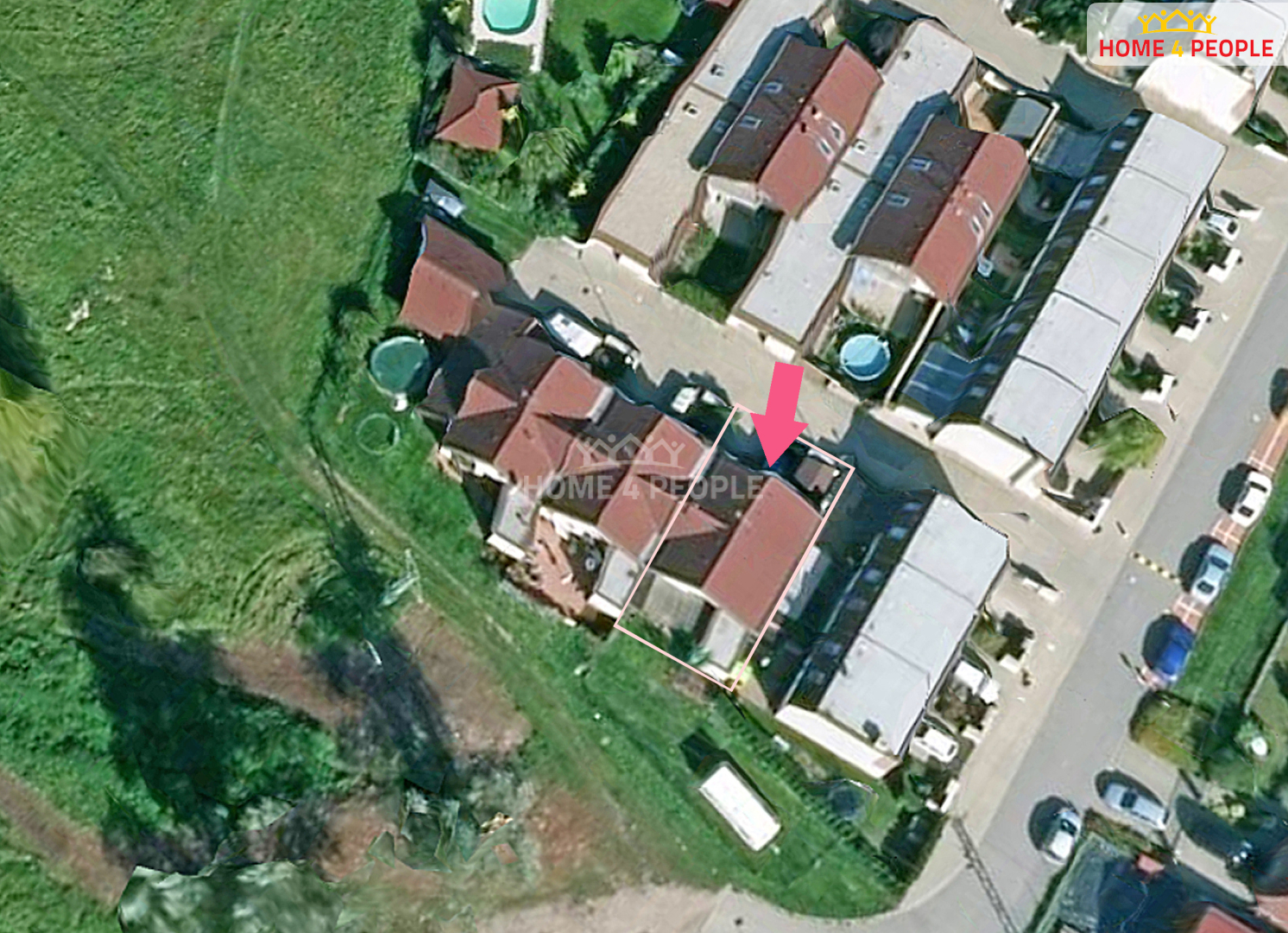 Z kuchyně je vstup do zastřešené pergoly se zámkovou dlažbou a malou zatravněnou zahrádkou se vzrostlým ovocným stromem. Také je zde vstup do venkovního skladu, který navazuje na budovu. Sklad je využíván pro umístění technického nářadí, kol a sekačky.