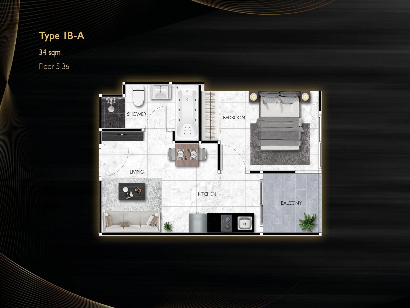 1 ložnice od 43 m od 6,05 milionu THB ( 163 000 USD / 148 000 EUR)