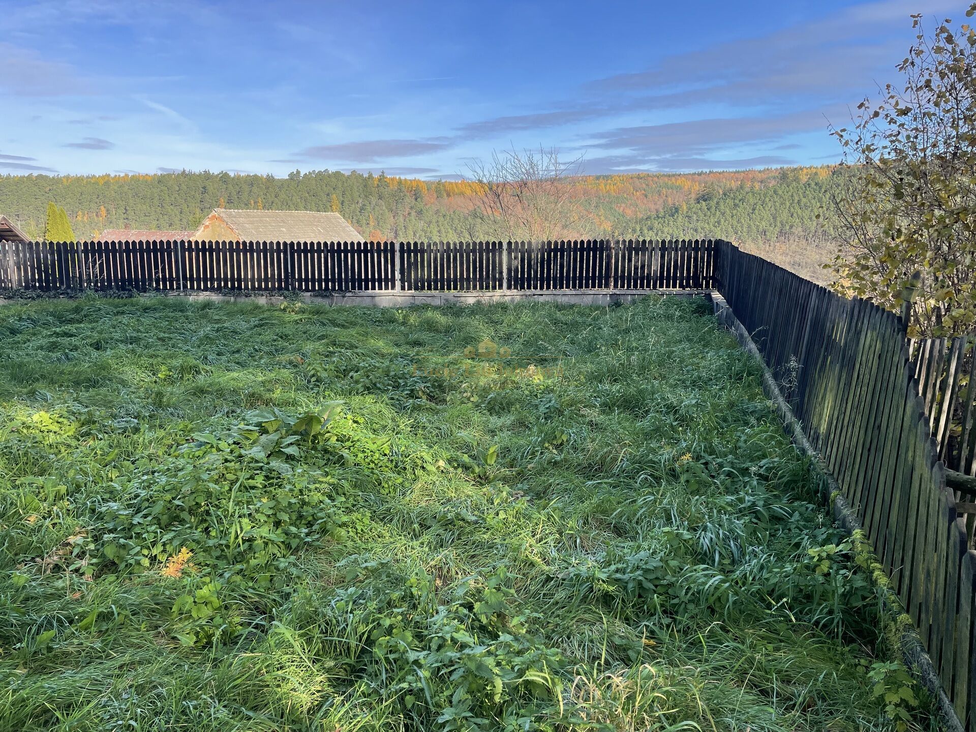 Dům se nachází na rovinatém, zatravněném pozemku s nádherným výhledem do okolní krajiny. Lesy a louky v bezprostřední blízkosti dodávají místu výjimečnou atmosféru a inspirují k aktivnímu odpočinku. Zahradu lze přetvořit dle individuálních potřeb a fantazie.