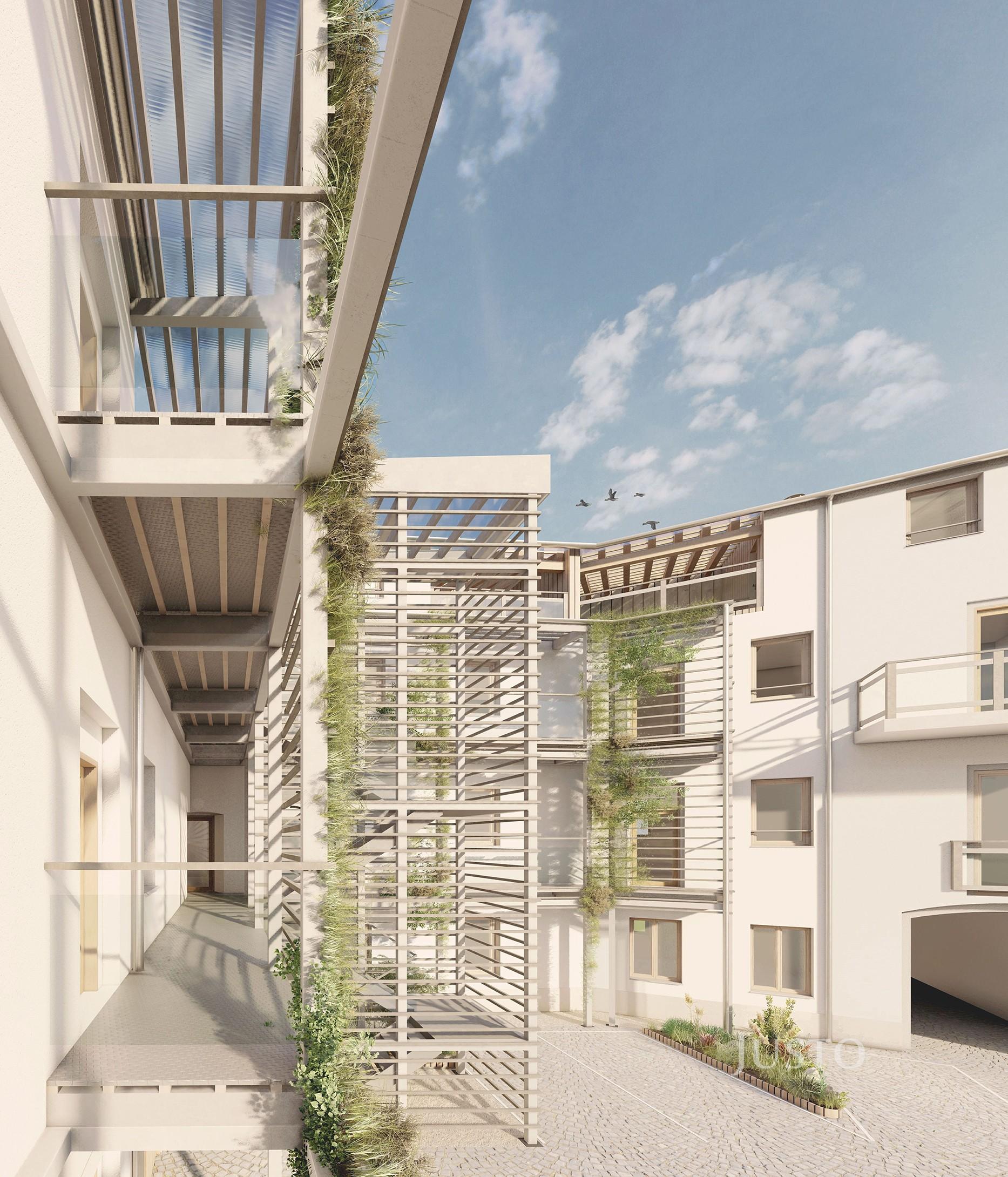 Součástí projektu jsou zastřešená parkovací stání v uzavřeném dvoře, který bude zabezpečen dálkově ovládanými vraty. Ke každému parkovacímu místu je připravena nabíječka pro elektromobil. O komfort a moderní způsob bydlení se stará inteligentní domácnost Loxone, připravenost na klimatizaci a efektivní technické řešení domu – vytápění plynovým kotlem a fotovoltaická elektrárna na střeše, která zajišťuje elektřinu pro společné prostory.