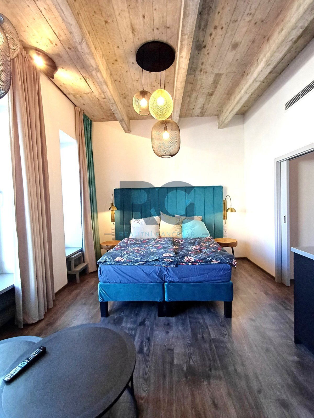 Nabízíme k pronájmu nadstandardní byt 1+kk o výměře 29 m2 s terasou o výměře 13 m2 , v jedinečném rezidenčním projektu v atraktivní lokalitě centra Písku na Velkém náměstí, v domě U Zlatého kříže. Funkcionalistický dům s bohatou historií prošel kompletní rekonstrukcí. Byt se nachází ve 3.NP a nabízí vzdušný obytný prostor spojený s kuchyňským