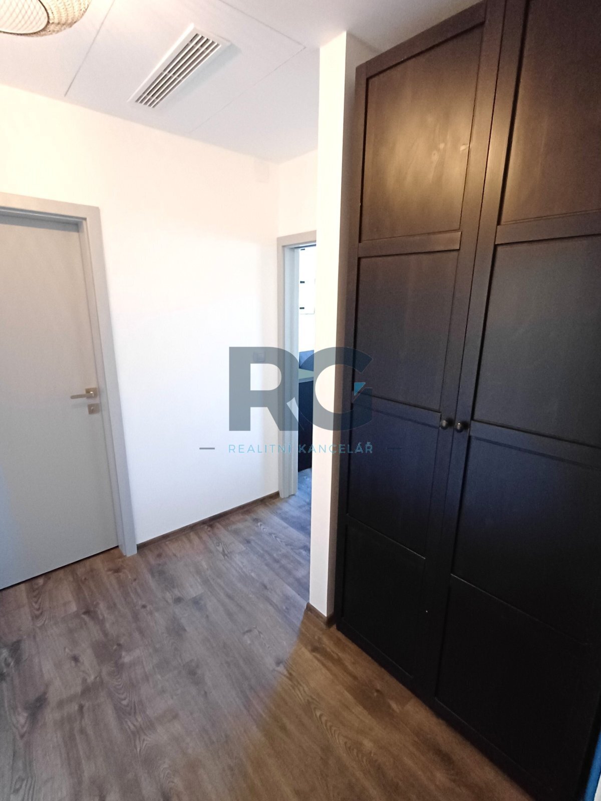 koutem s linkou vybavenou spotřebiči (myčka, lednice s mrazákem, varná deska, trouba a digestoř) a s výstupem na terasu, situovanou do klidného vnitrobloku, s výhledem na Děkanský kostel. Koupelna je společná s toaletou a vybavená sprchovým koutem, umyvadlem a pračkou. V předsíní bytu je umístěna šatní skříň. Byt se pronajímá zařízený.