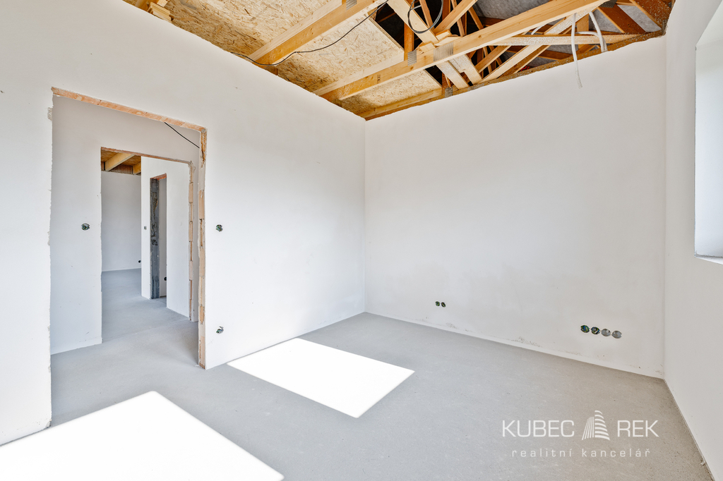 Dům o podlahové ploše 106 m² stojí na oploceném pozemku o velikosti 531 m², kde najdete dostatek místa pro dětské hřiště, bylinkový záhonek i letní grilování s přáteli. Díky orientaci na jih a umístění na konci slepé ulice vás tu nebude nic rušit. Pocit klidu ještě umocní okolní pozemky, na kterých se již nebude budovat.