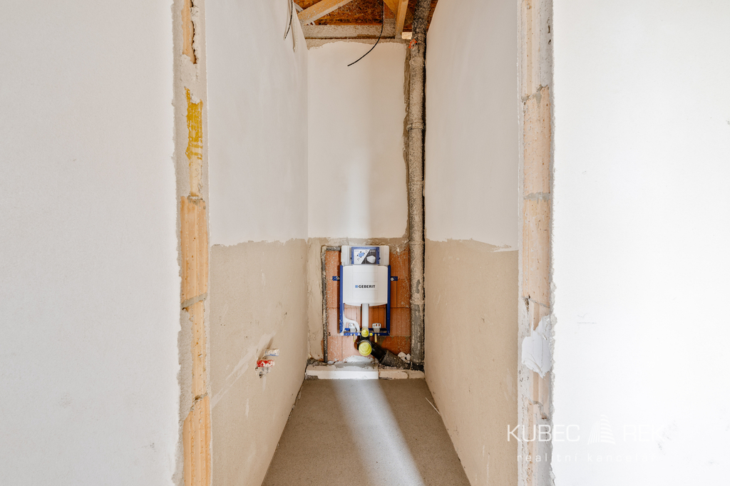 Uvnitř vás čeká moderní prostor s velkým francouzským oknem do zahrady, kuchyní s navazující spíží i praktickou technickou místností. Každý detail byl promyšlen tak, aby vám každodenní život usnadnil a zároveň zpříjemnil. Ať už jste uprostřed ranního shonu nebo si užíváte víkendový brunch s rodinou, tenhle dům vám bude skvěle sloužit.
