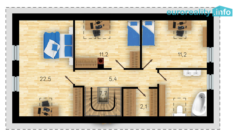 Součástí nabídky je projekt rodinného domu o dispozici 5+1 a velikosti 140 m², který můžete využít. Velkou výhodou však je, že nejste tímto návrhem nijak omezeni – na pozemku můžete realizovat i menší či větší rodinný dům, bungalov nebo úsporné bydlení přesně podle svých představ (v souladu s územním plánem).