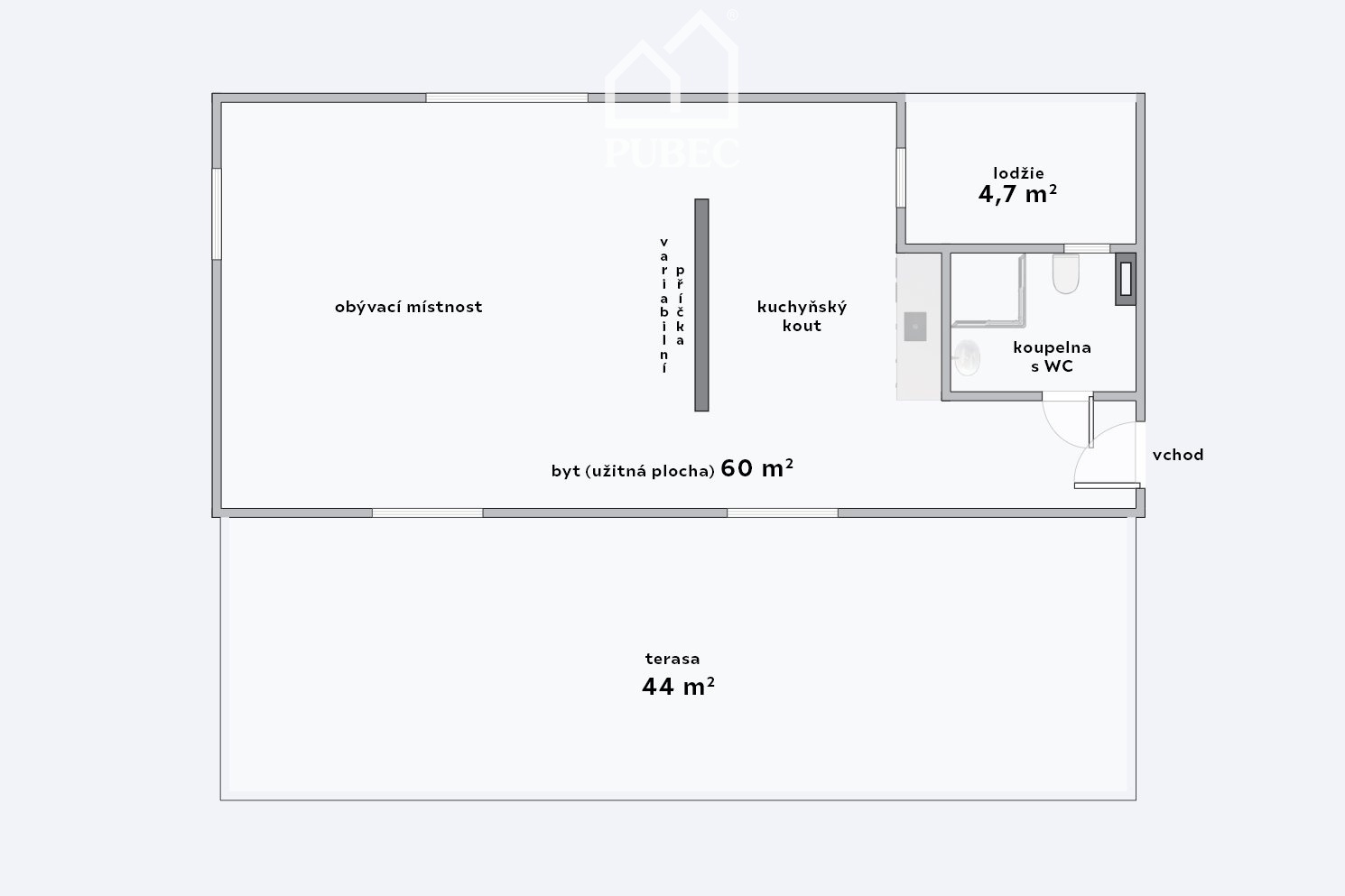 | Dispozice/podlahová plocha: | 2+kk/60 m² |