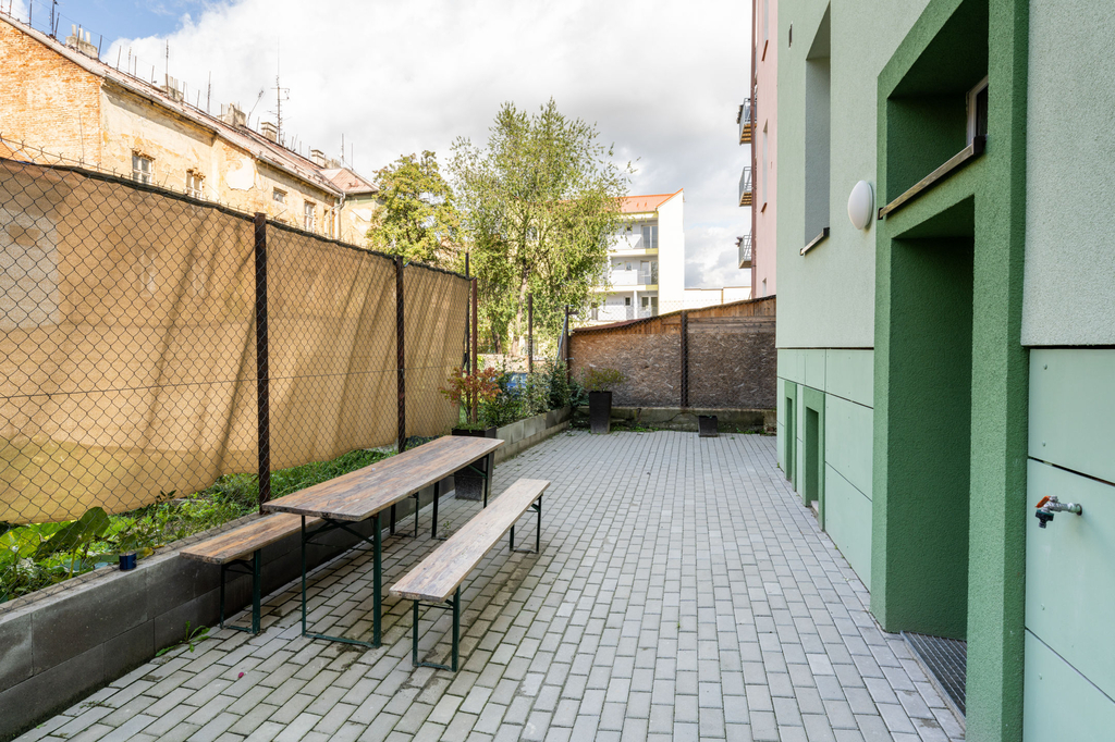 Vytápění a ohřev teplé vody zajišťuje vlastní plynový kotel s možností regulace pomocí prostorového termostatu. Spotřeba energií je měřena samostatně pro každý byt. K dispozici je společný dvůr s posezením ve vnitrobloku domu.