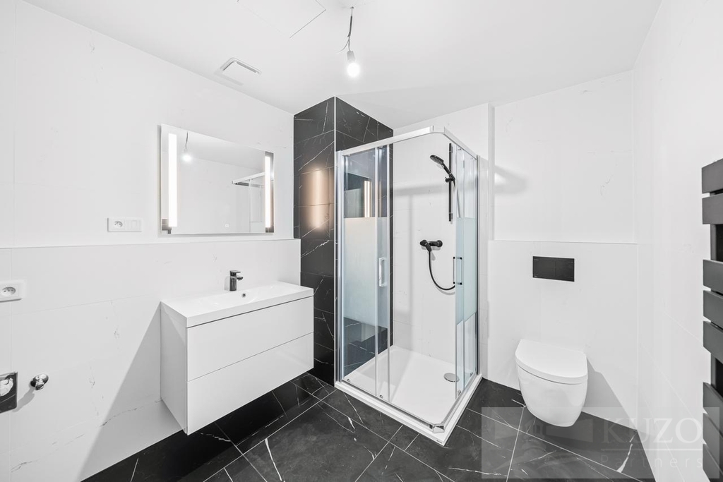 Byt je ideální pro jednoho, disponuje prostornou předsíní, která poskytuje dostatek prostoru pro uskladnění věcí, či velkou šatní skříň. Obytný pokoj je zařízen velkou a kuchyňskou linkou s naddimenzovanými skříňkami, moderními spotřebiči, včetně myčky, pečící trouby, indukční varné desky a digestoře, což ocení každý milovník vaření.