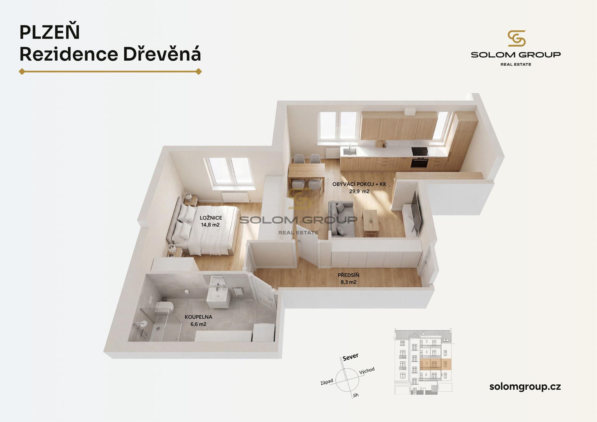 Nabízíme k prodeji kompletně zrekonstruovaný byt o dispozici 2+kk a velikosti 61 m² v družstevním vlastnictví, situovaný v Plzni, ulice Dřevěná. Byt se nachází ve 3. nadzemním podlaží z celkových 5 podlaží domu, který bude nově vybaven výtahem.