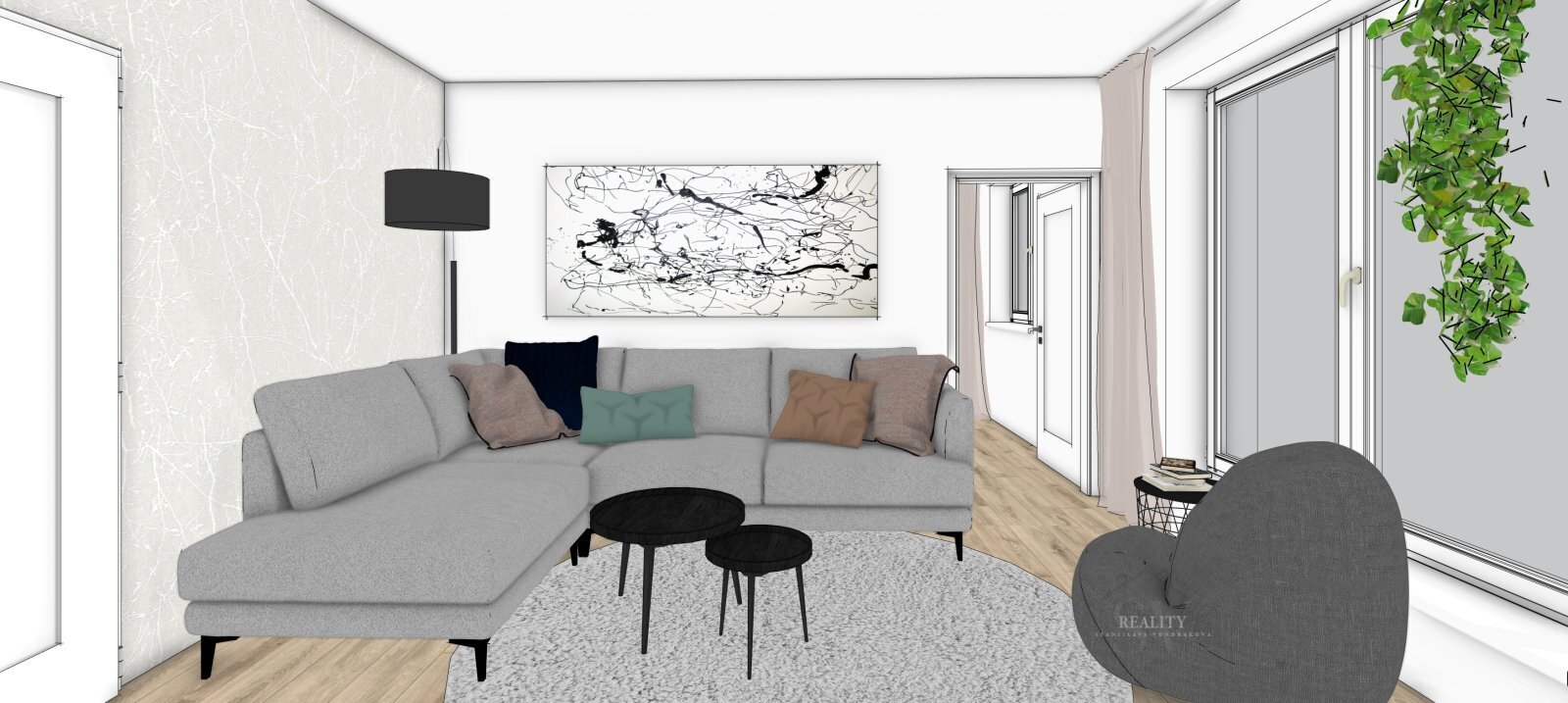 Celý interiér je sladěn do svěžích, moderních tónů, které působí útulně a harmonicky. K bytu je k dispozici kompletní vizualizace a půdorys, které vám umožní lépe si představit budoucí podobu prostoru před dokončením rekonstrukce.