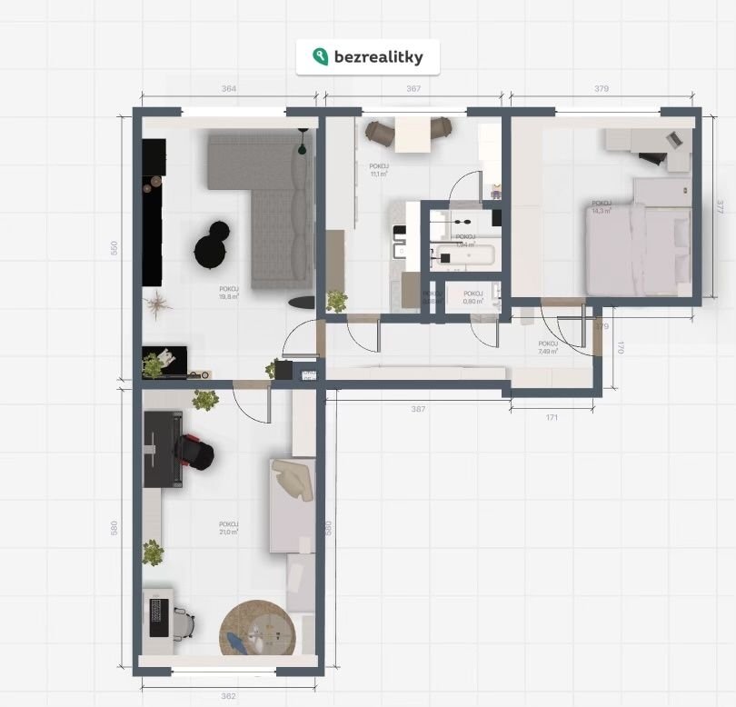 | Dispozice/podlahová plocha: | 3+1/74 m² |