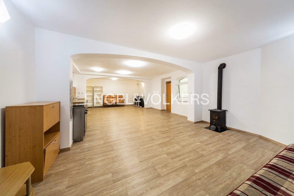 K dlouhodobému pronájmu nabízíme ateliér s dispozicí 3+kk, který se nachází v klidné vilové části Bolevce. Ateliér je součástí rodinného domu a nachází se v 1. podzemním podlaží. Do budovy se vchází přímo z vlastní zahrady, která je nájemci k dispozici. Součástí zahrady je parkovací stání a zahradní domek.