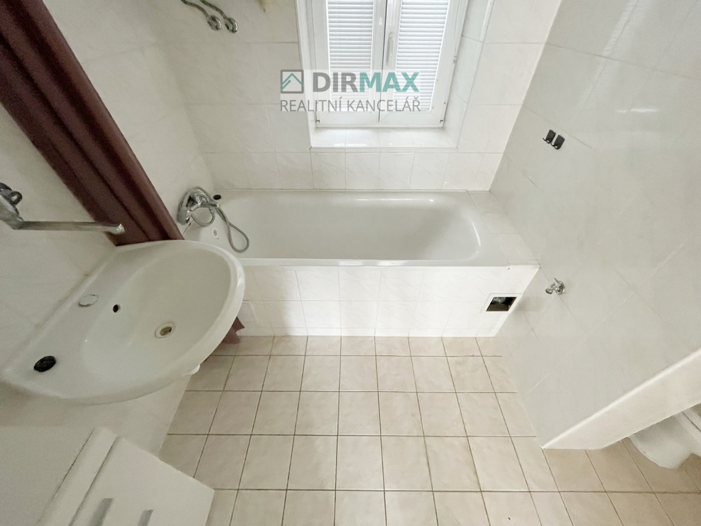 Velkou výhodou je velká koupelna s vanou a další sanitární keramikou. Je tady i přípojka na pračku. Toaleta je pak samostatně. V bytě je ještě skutečně velká komora s dostatkem úložného prostoru. Ještě jedna menší, např. úklidová místnost.