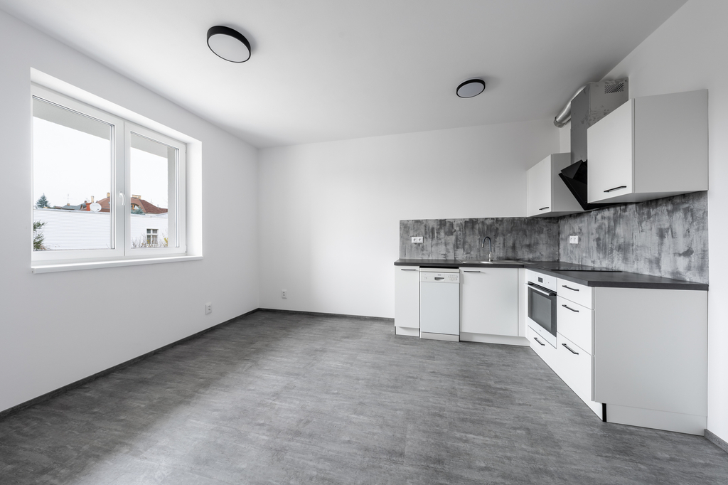 Byt je vybaven moderní kuchyňskou linkou včetně vestavné elektrické trouby, sklokeramické varné desky, digestoře a myčky nádobí. Dále je součástí koupelnový nábytek a kompletní LED osvětlení.