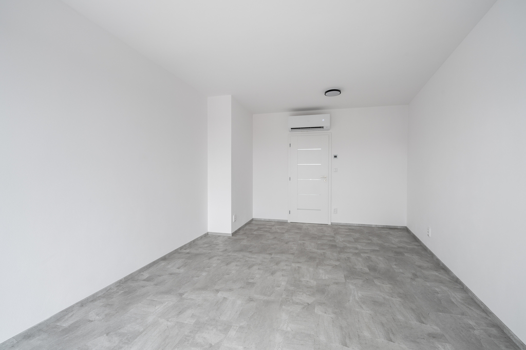 Dispozice zahrnuje obývací pokoj s kuchyňským koutem, ložnici, předsíň a koupelnu s toaletou. Balkon přístupný z ložnice je orientovaný do klidného vnitrobloku. K bytu náleží sklepní kóje (2 m2).