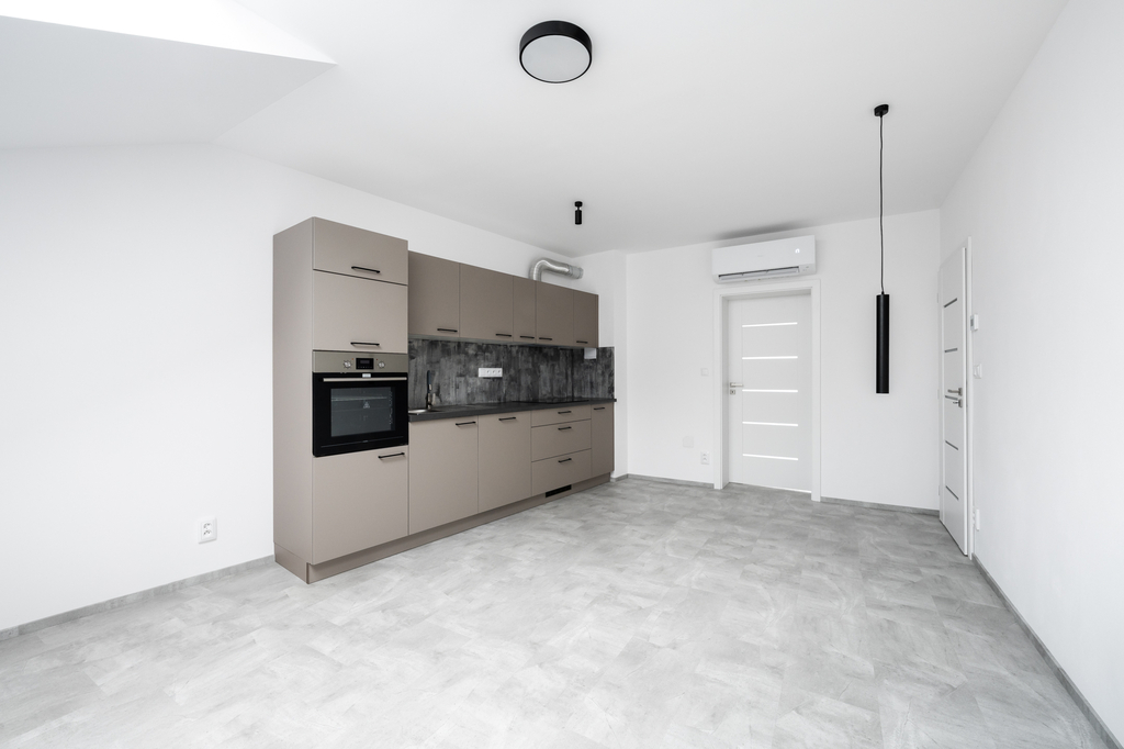 Součástí vybavení je moderní kuchyňská linka s vestavnou elektrickou troubou, sklokeramickou varnou deskou, digestoří a myčkou nádobí. Byt je dále vybaven koupelnovým nábytkem, kompletním LED osvětlením.